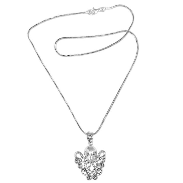 Sterling Silver Pendant Necklace of an Octopus 'Octopus of the Deep' This 'Octopus of the Deep' pendant necklace by Independent Artisans is a glistening and creative piece from Indonesian artisan Nyoman Rena. The necklace features an octopus pendant with tangled legs, showcasing Rena's creative abilities and his background as a sculptor. This design captures both Balinese heritage and modern design, offering a unique and imaginative accessory for sea creature lovers.