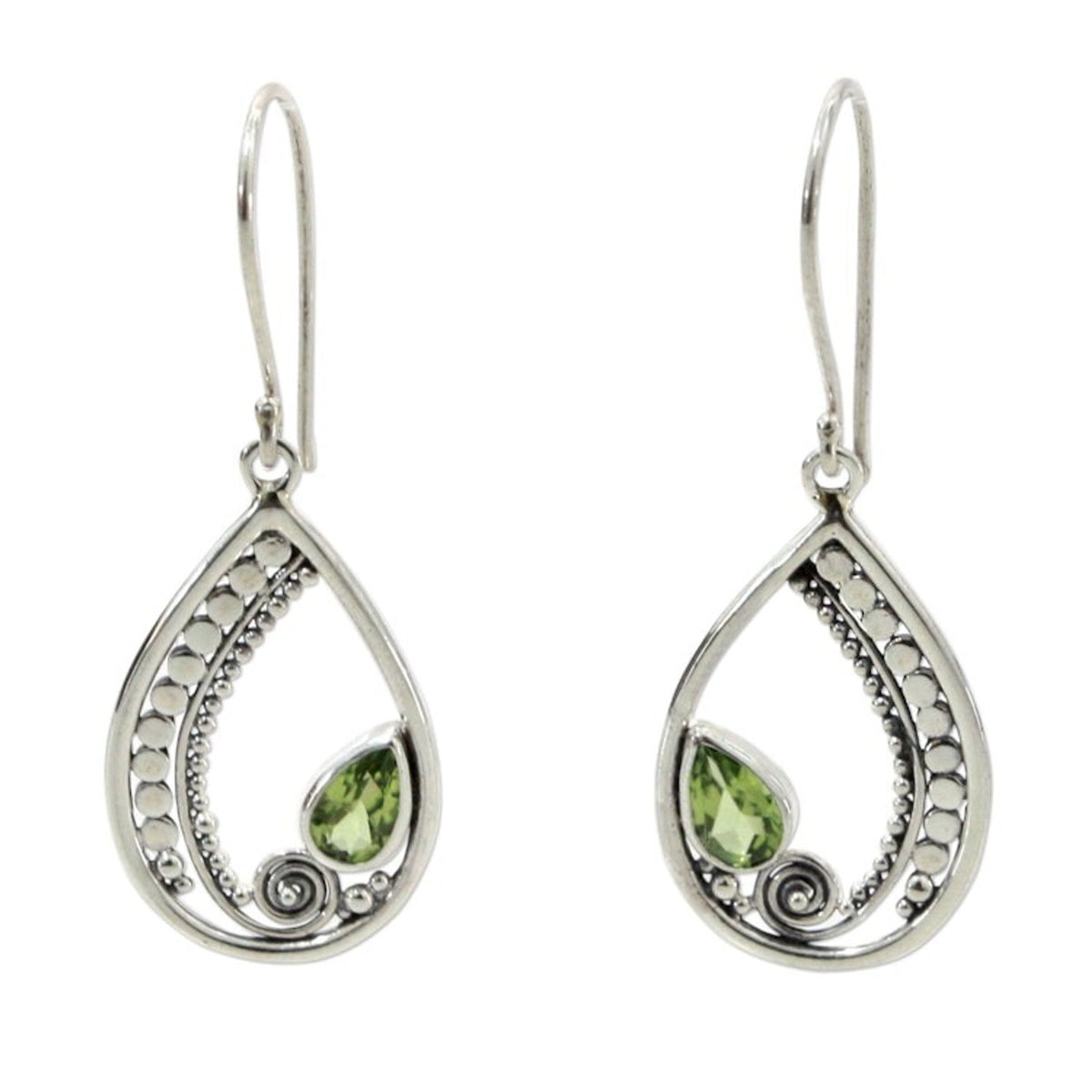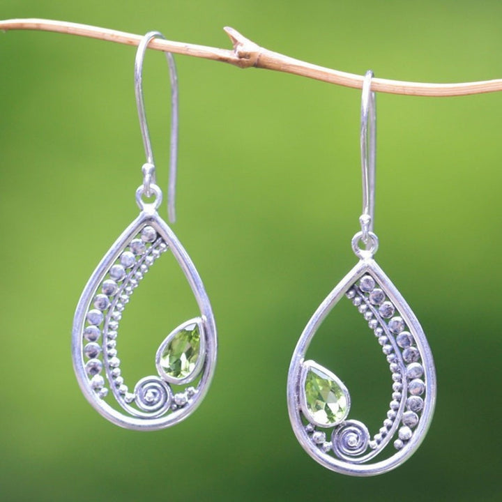 Sterling Silver Peridot Dangle Earrings 'Paisley Swirl'