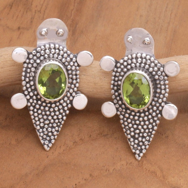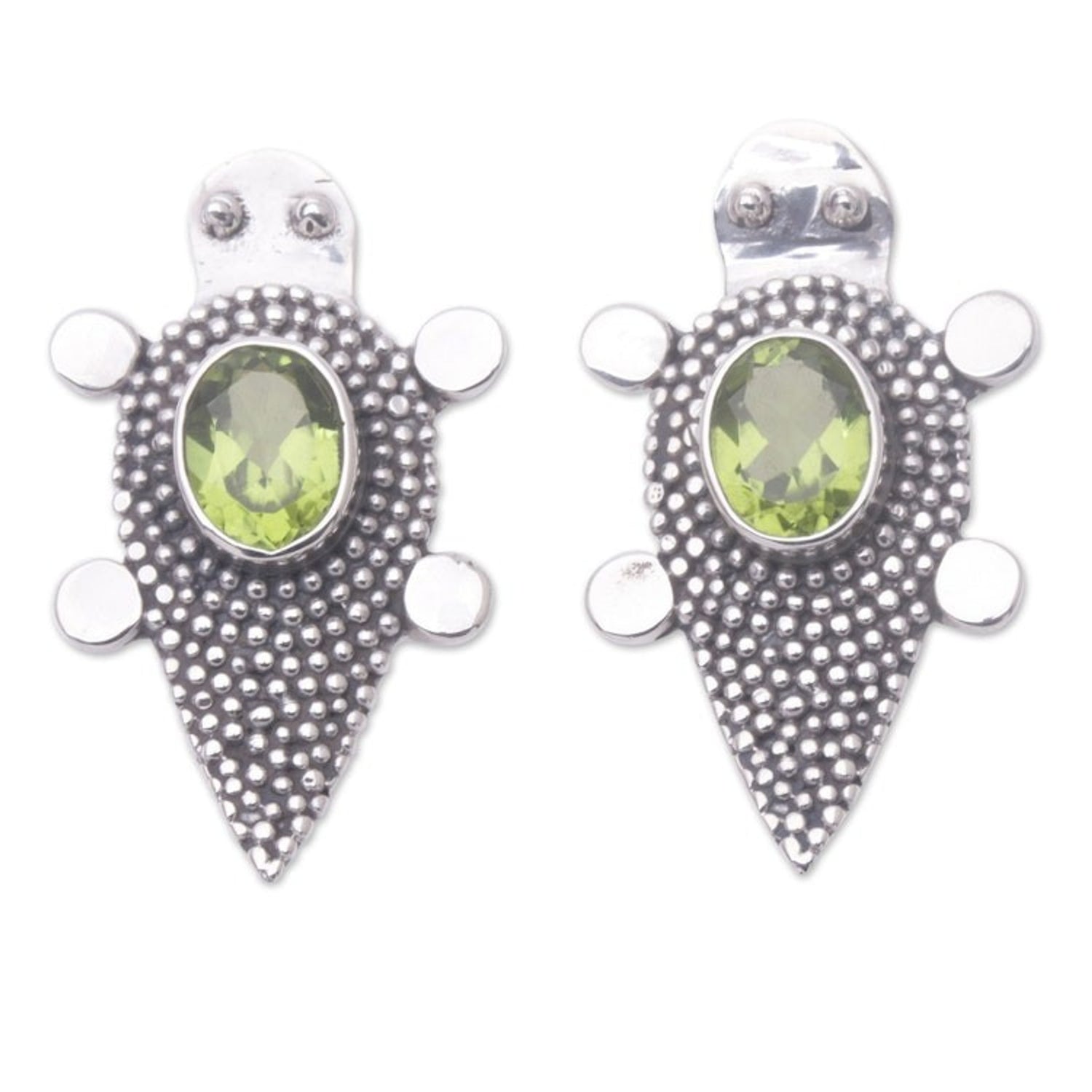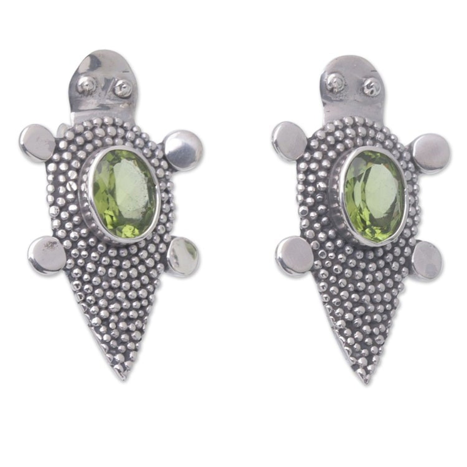 Sterling Silver Peridot Tortoise Button Earrings 'Heaven's Green Tortoise'