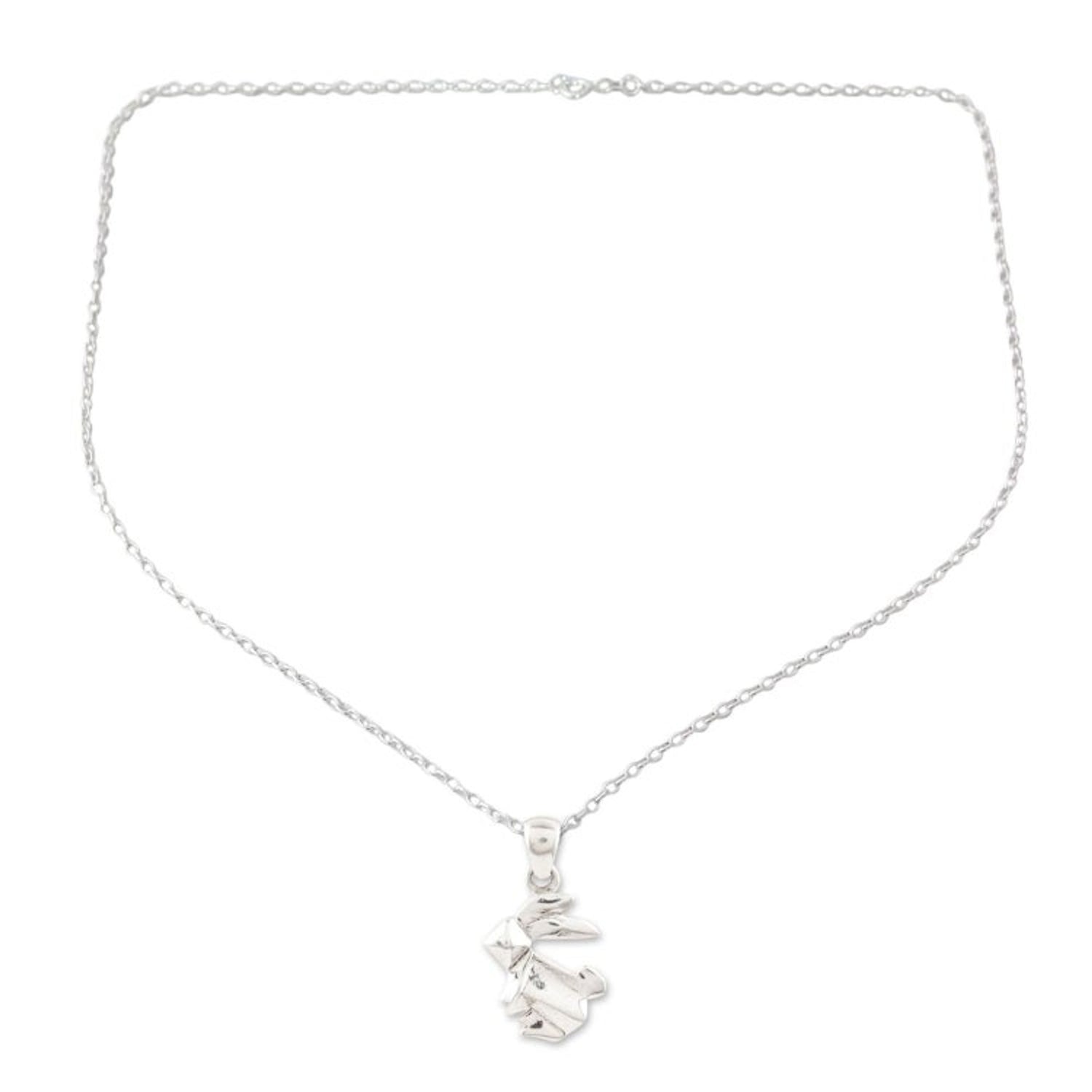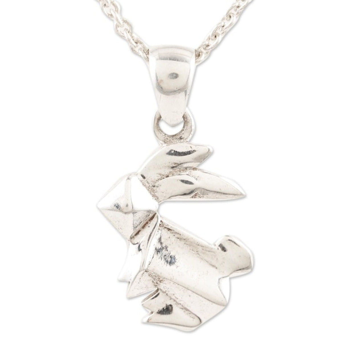 Sterling Silver Rabbit-Motif Pendant Necklace 'Geometric Rabbit'