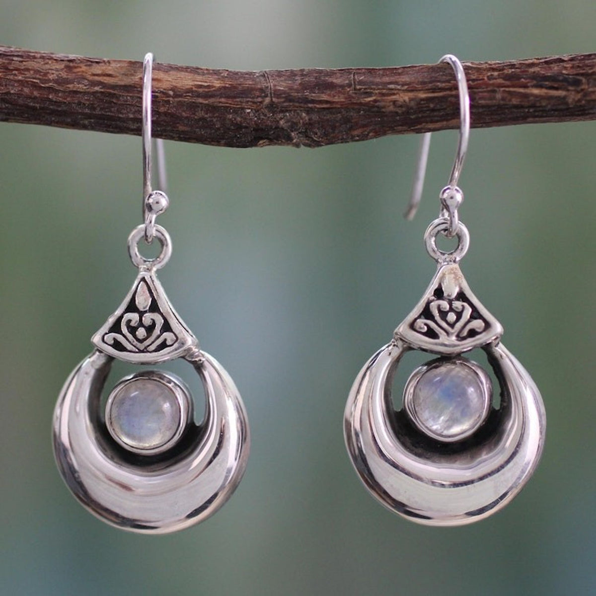 Sterling Silver Rainbow Moonstone Earrings from India 'Goddess Fortunes'