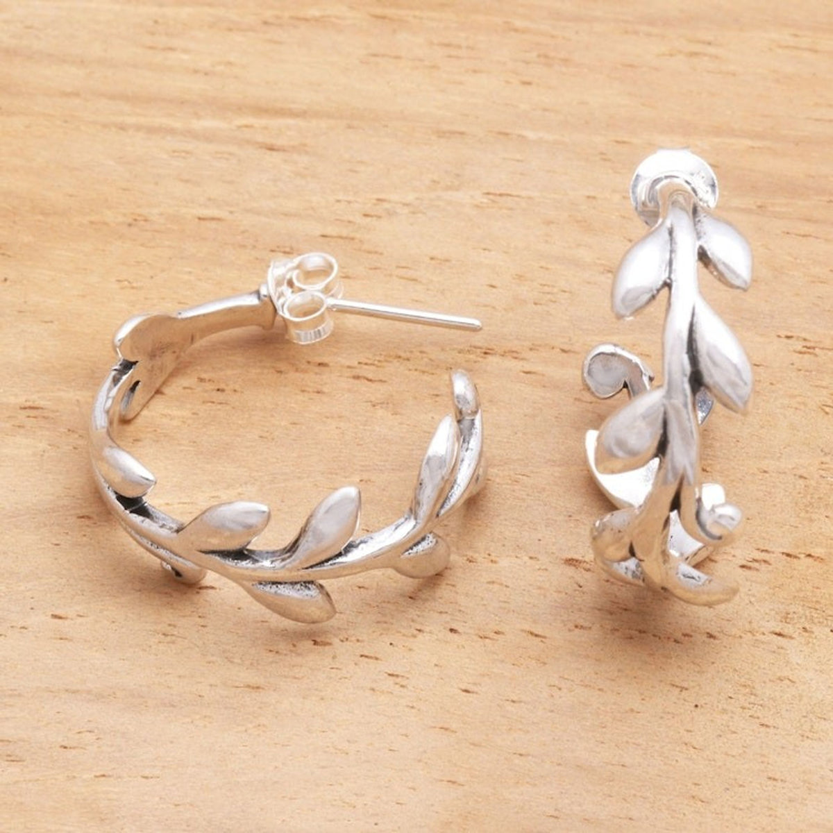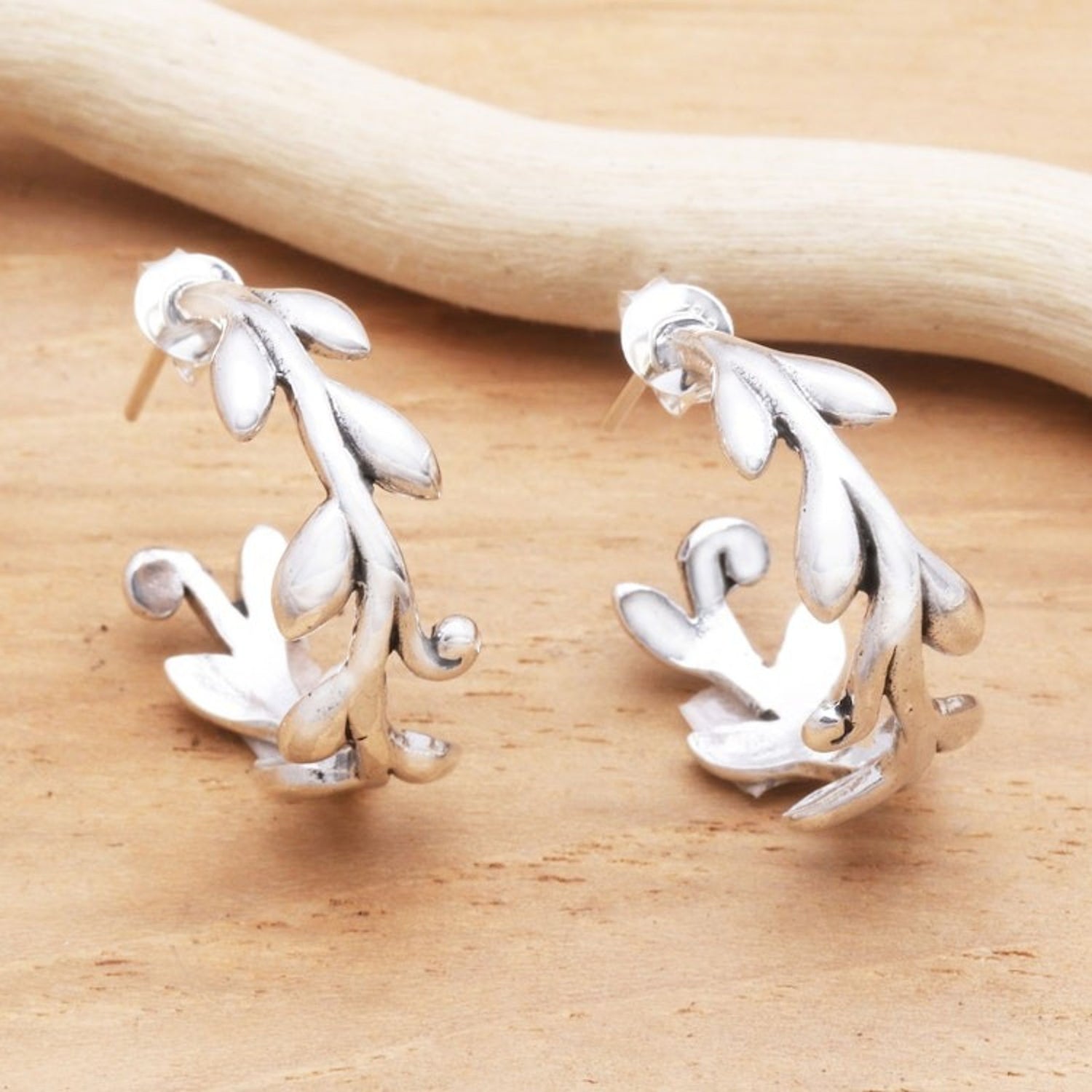 These Sterling Silver Rice Stalk Half-Hoop Earrings by Dewa Arimbawa are a beautiful and meaningful tribute to one of Indonesia's most important crops. The half-hoops are designed to resemble stalks of rice, a symbol of life and prosperity. Crafted with a polished finish and a subtle combination of textures, they reflect the artisan's ability to transform everyday elements into elegant, wearable art. These earrings are a charming and unique accessory that tells a story of cultural heritage and perseverance, making them an ideal piece for those who appreciate jewelry with a deeper connection.