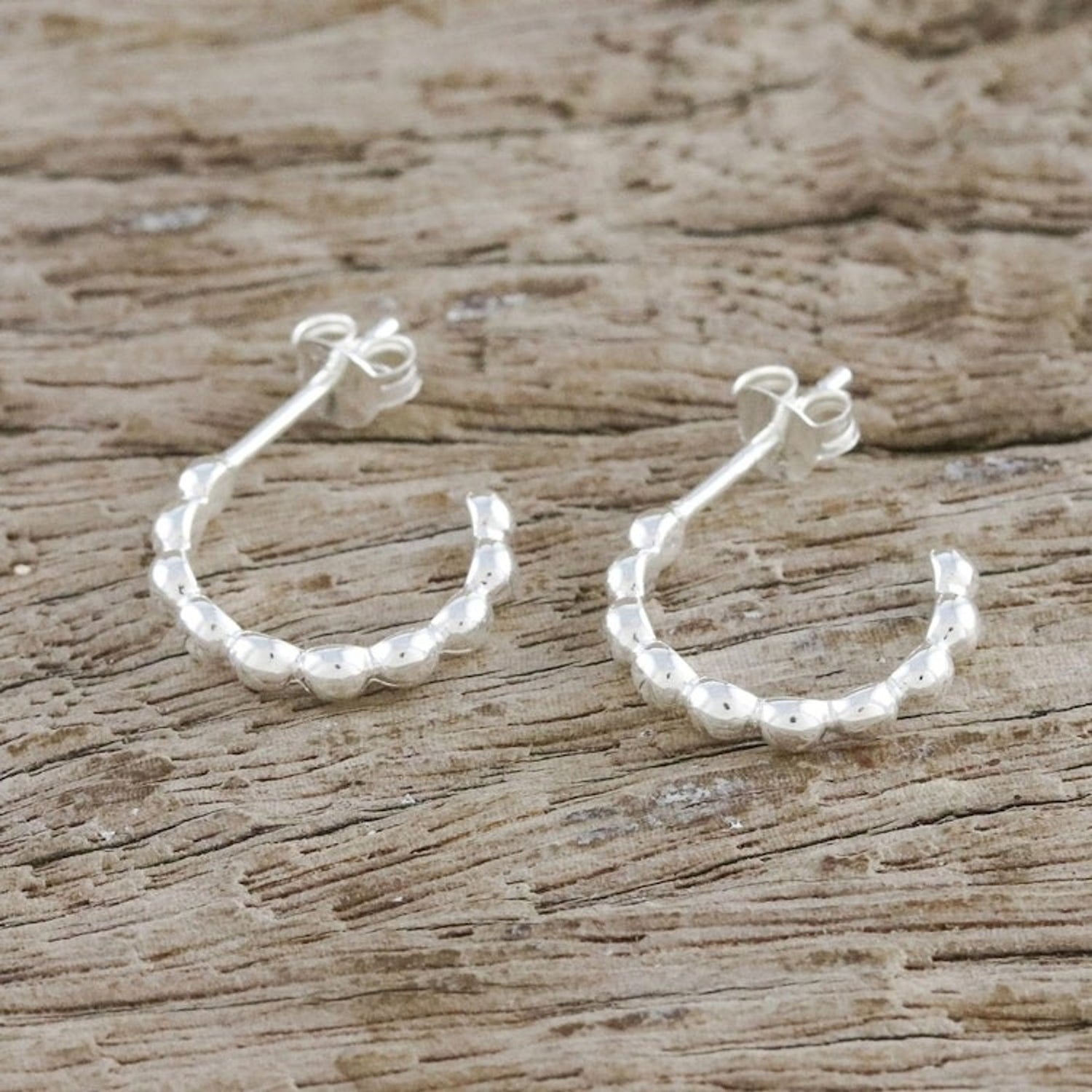 Sterling Silver Shining Half-Hoop Earrings from Thailand 'Bright Baubles'