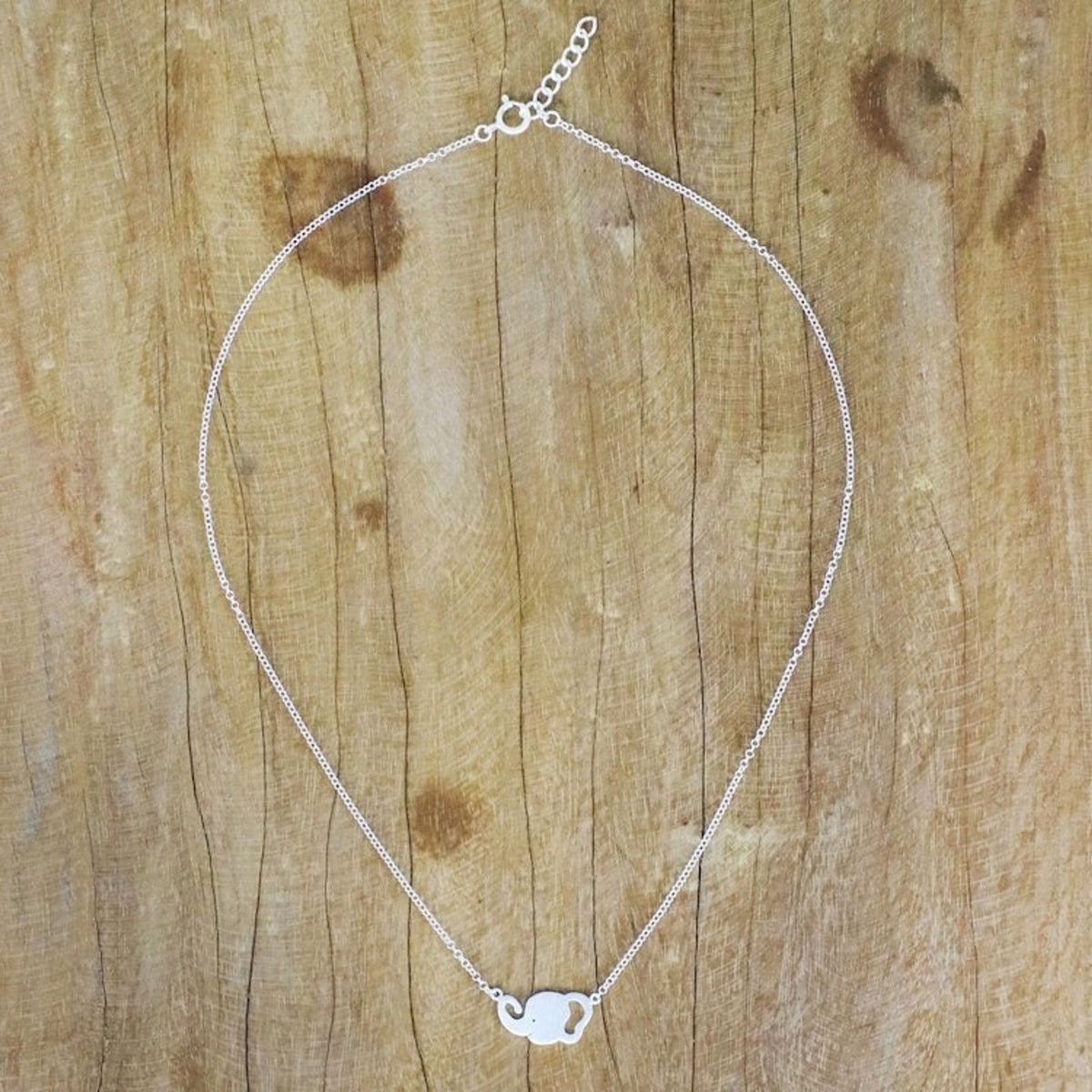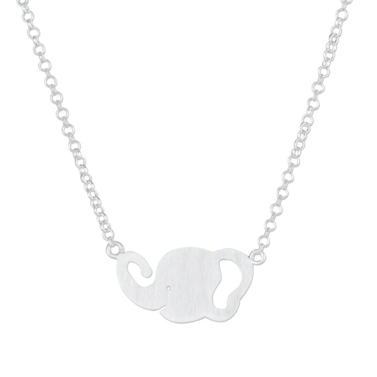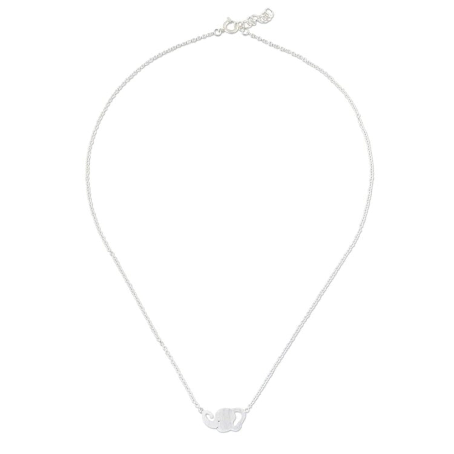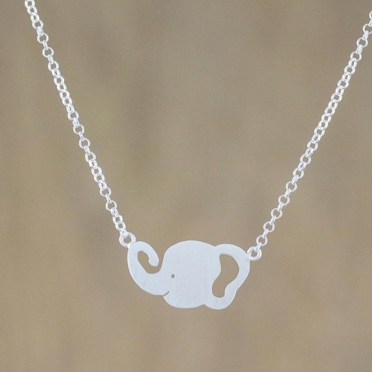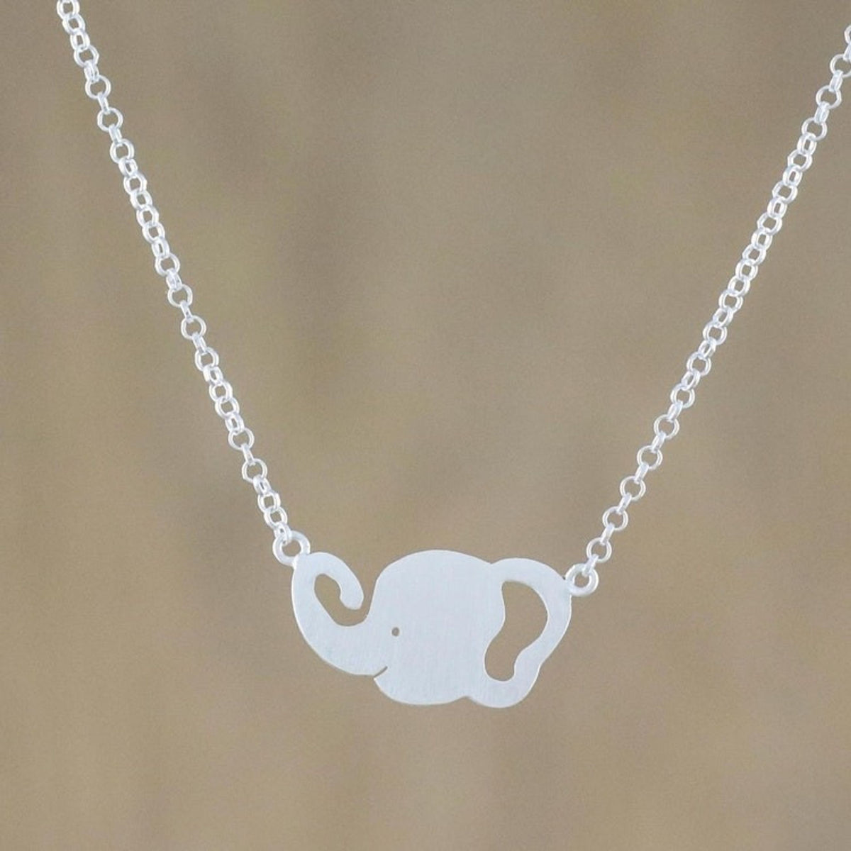 This Sterling Silver Smiling Elephant Necklace by Jantana is a charming and whimsical accessory that brings a touch of joy to any outfit. The pendant features the silhouette of a happy, grinning elephant, crafted with creative openwork that suggests its features. With a brushed-satin finish, the elephant pendant has a soft, elegant glow. This necklace, named "Elephant Grin," reflects the artisan's commitment to community and her family's legacy of craftsmanship. It's a delightful piece for those who appreciate both delicate artistry and modern appeal.