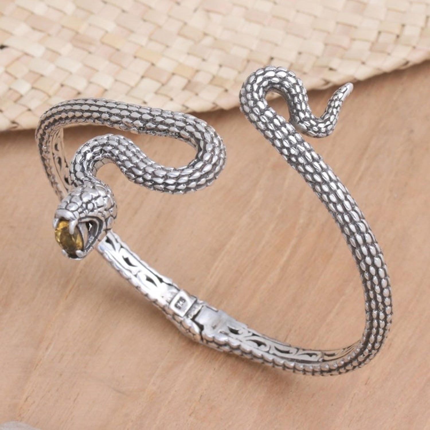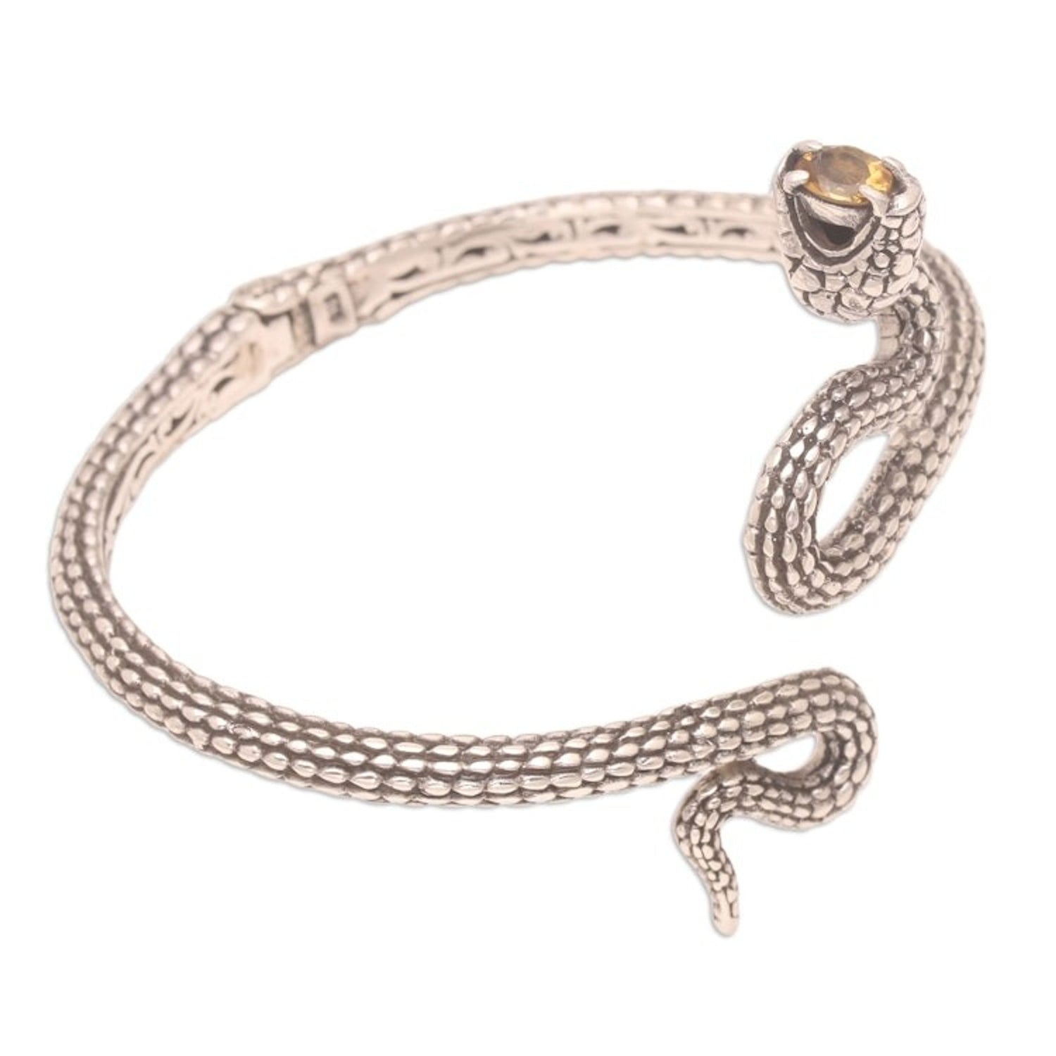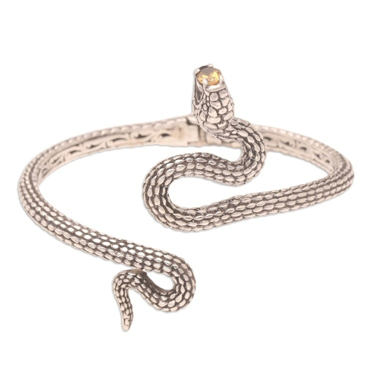 Sterling Silver Snake Cuff Bracelet with Faceted Citrine 'Snake Gem'