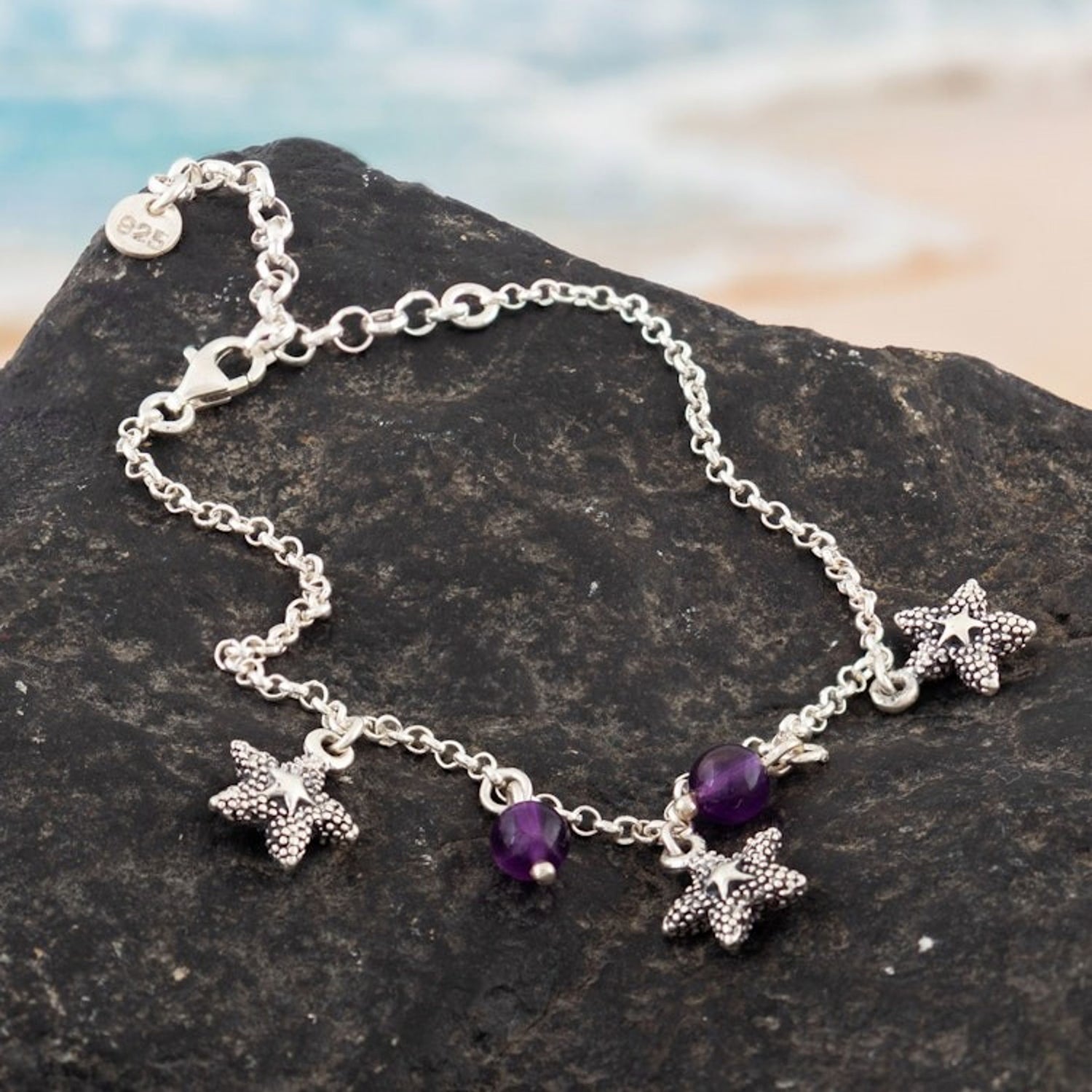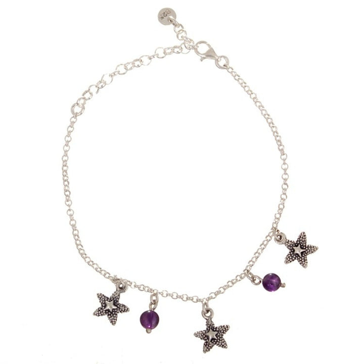Sterling Silver Starfish Charm Bracelet with Amethyst Stone 'Purple Summer Breeze'