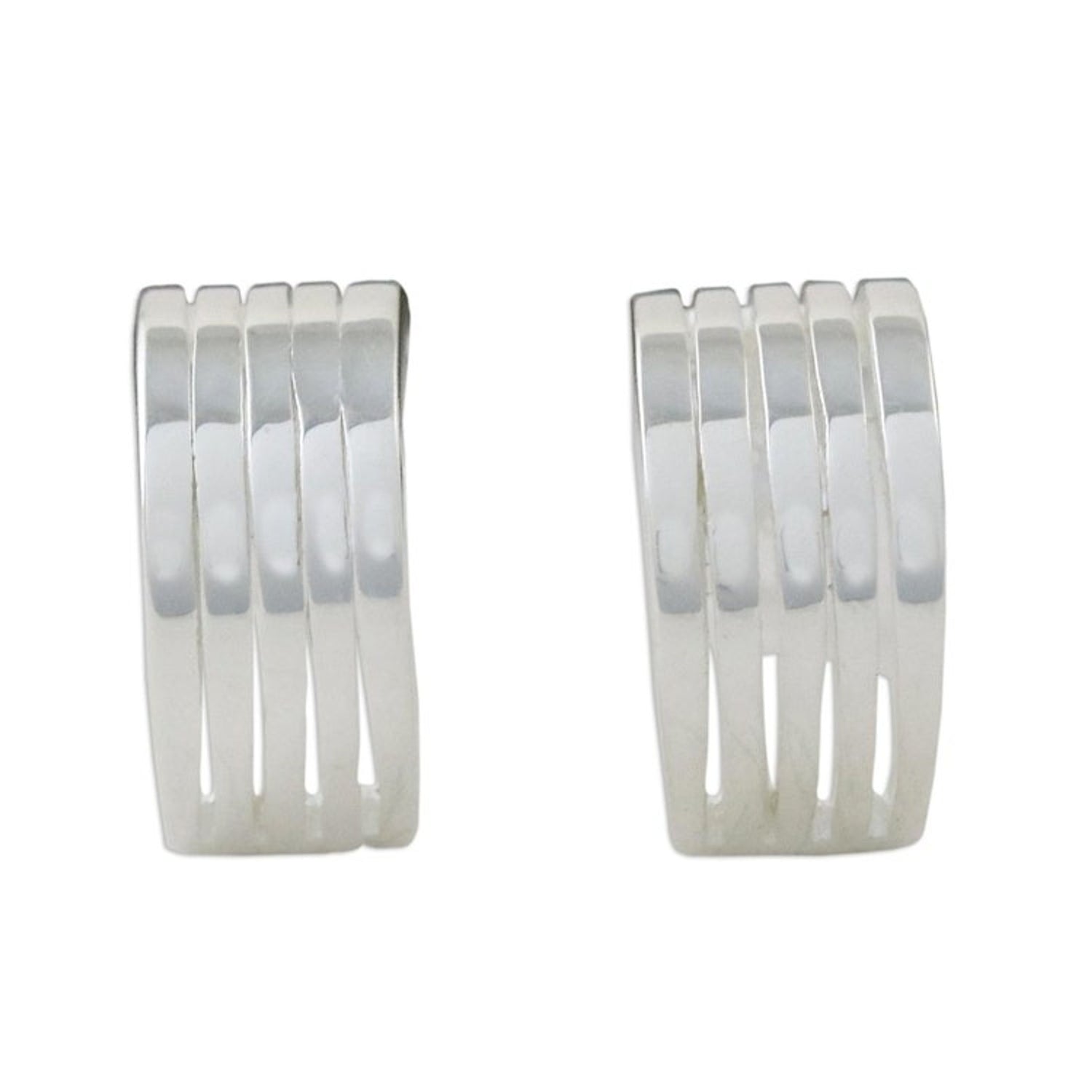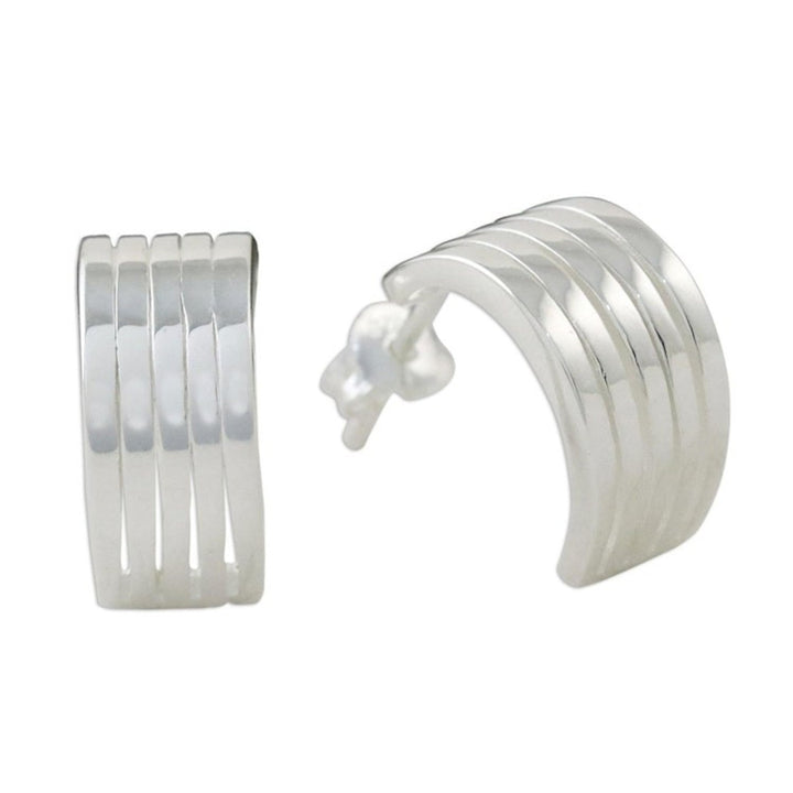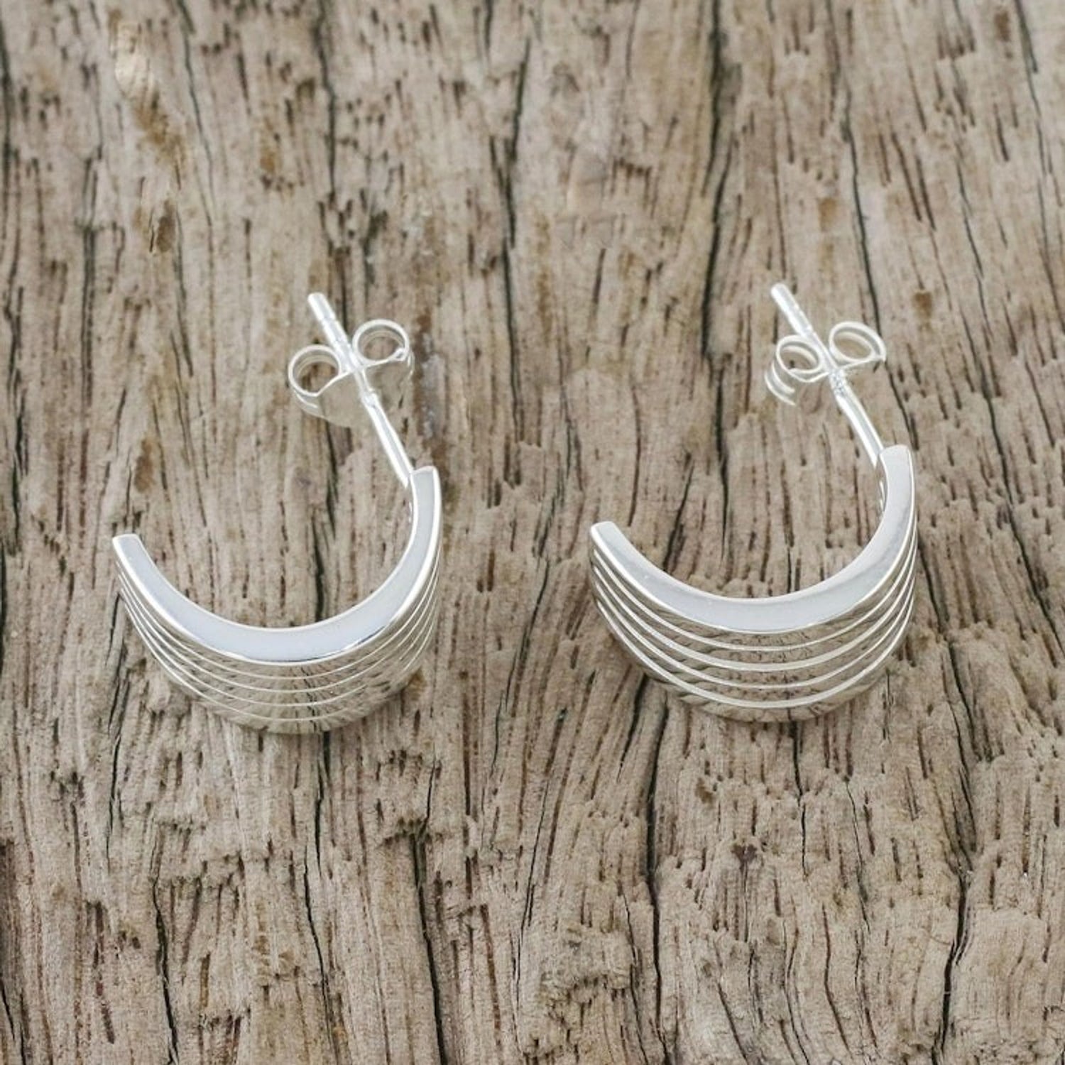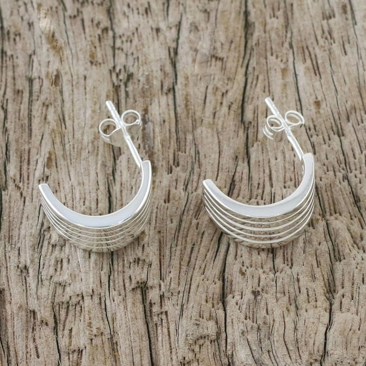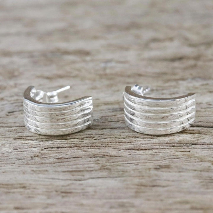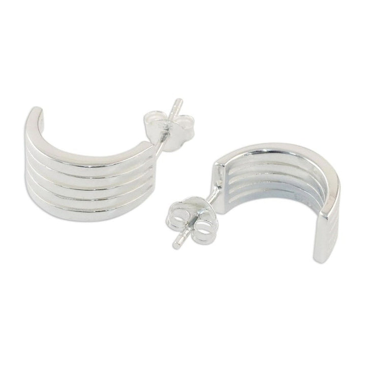 Sterling Silver Striped Half-Hoop Earrings from Thailand 'Shimmering Stripes'