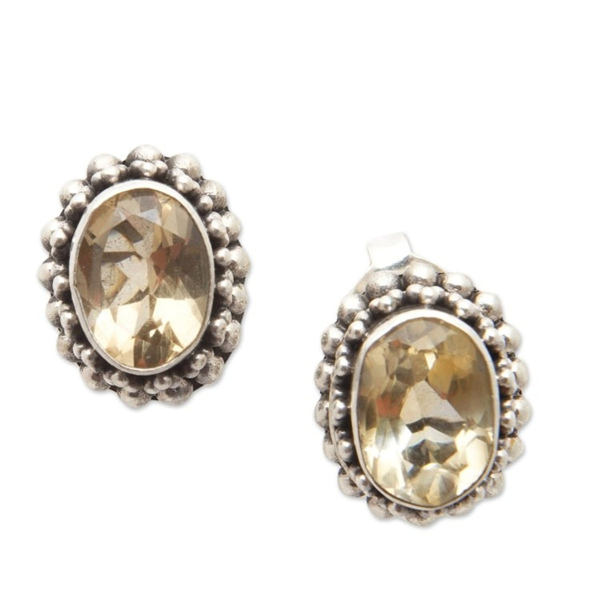 Sterling Silver Stud Earrings with Oval Citrine Gems 'Yellow Maiden'