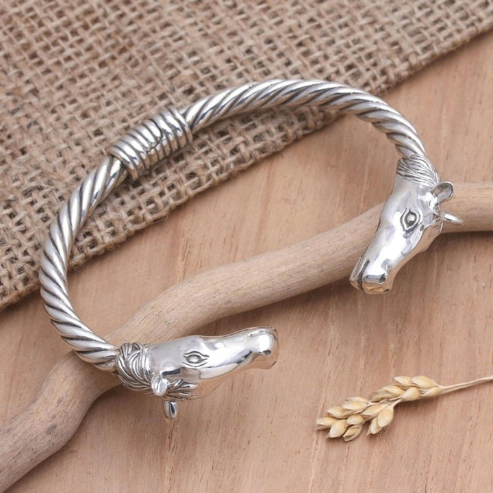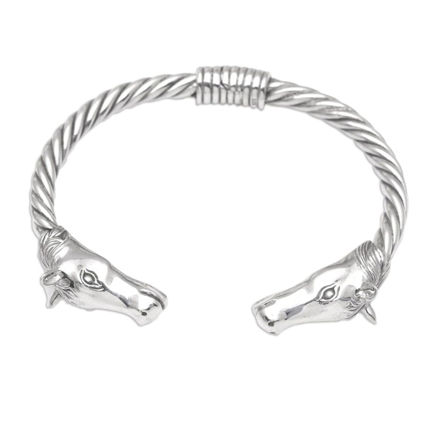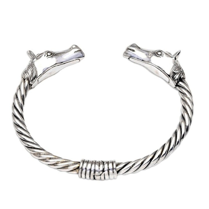 Sterling Silver Twisted Cuff Bracelet with Horses' Heads 'Horse Race'