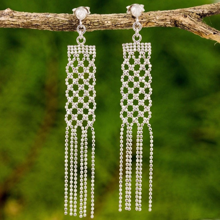 Sterling Silver Waterfall Earrings on Posts from Thailand 'Net Chandeliers'