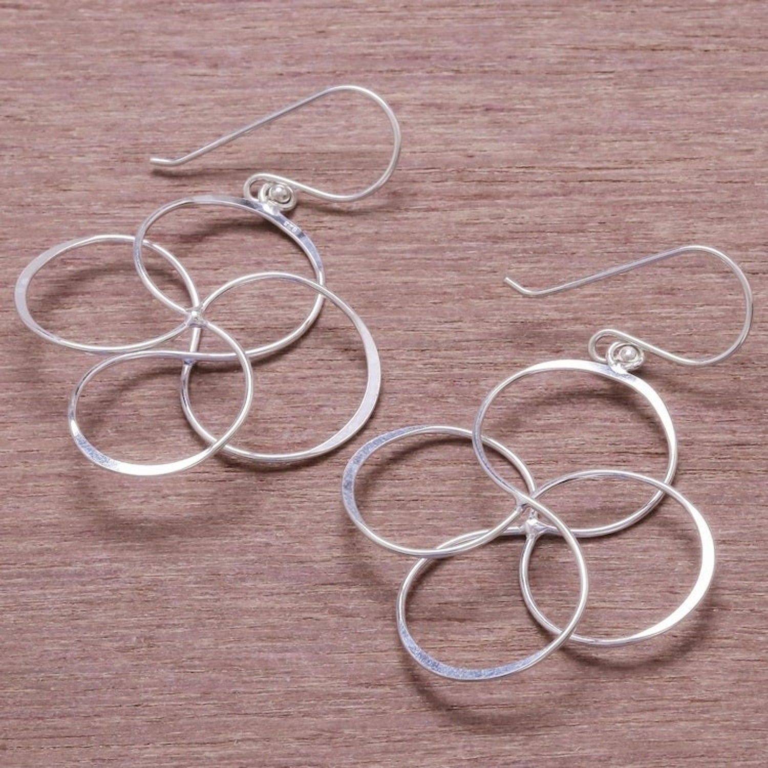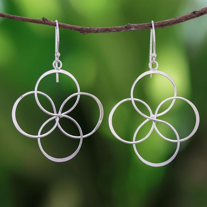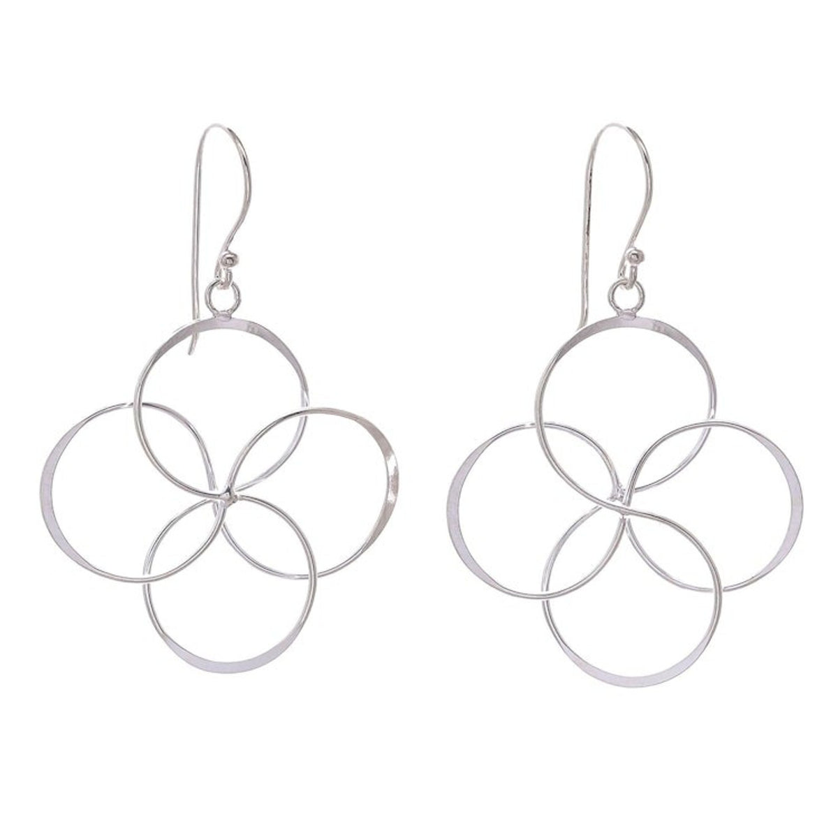 Sterling Silver Wire Dangle Earrings from Thailand 'Quartet Intersections'