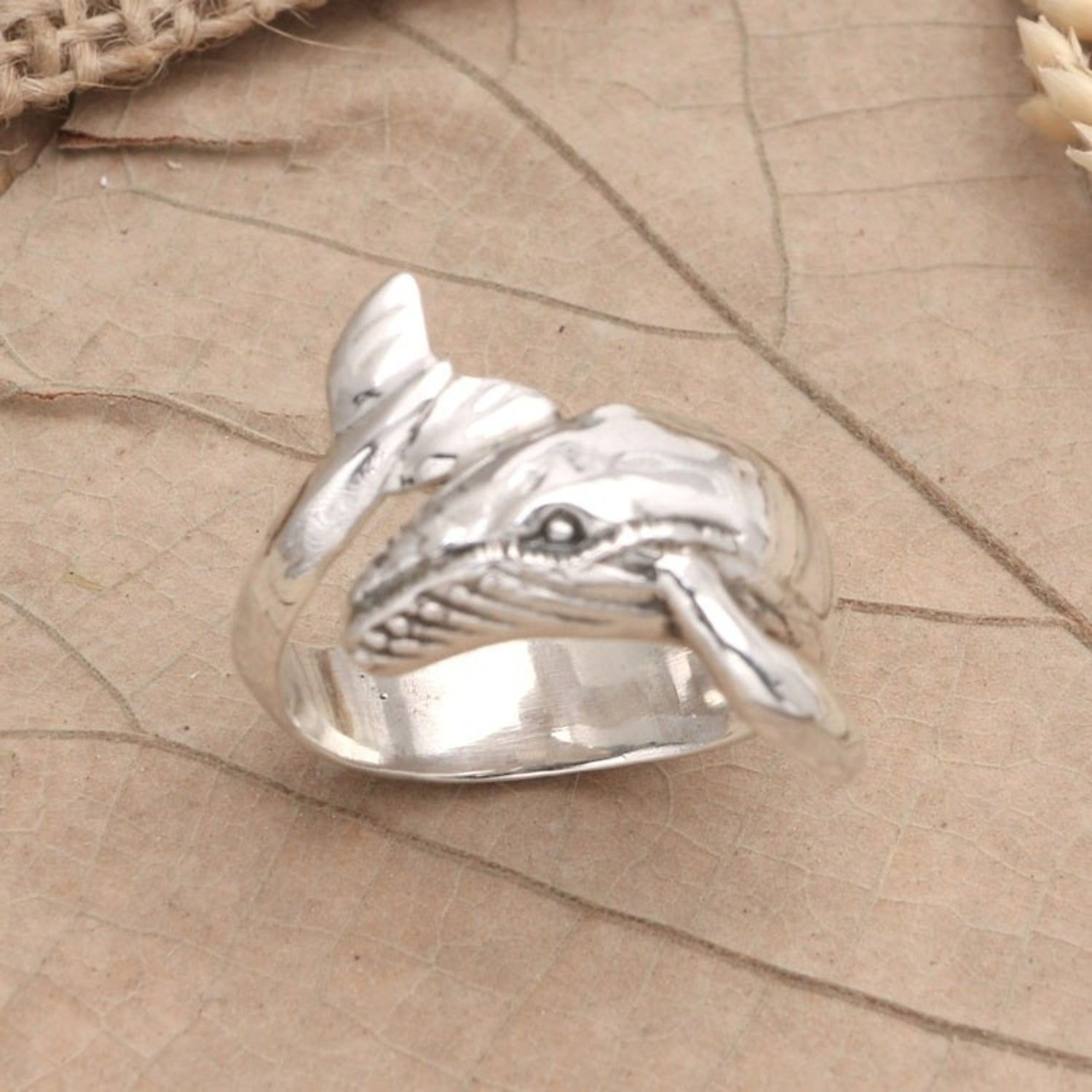 Sterling Silver Wrap Ring with Whale Motif 'Gentle Giant'
