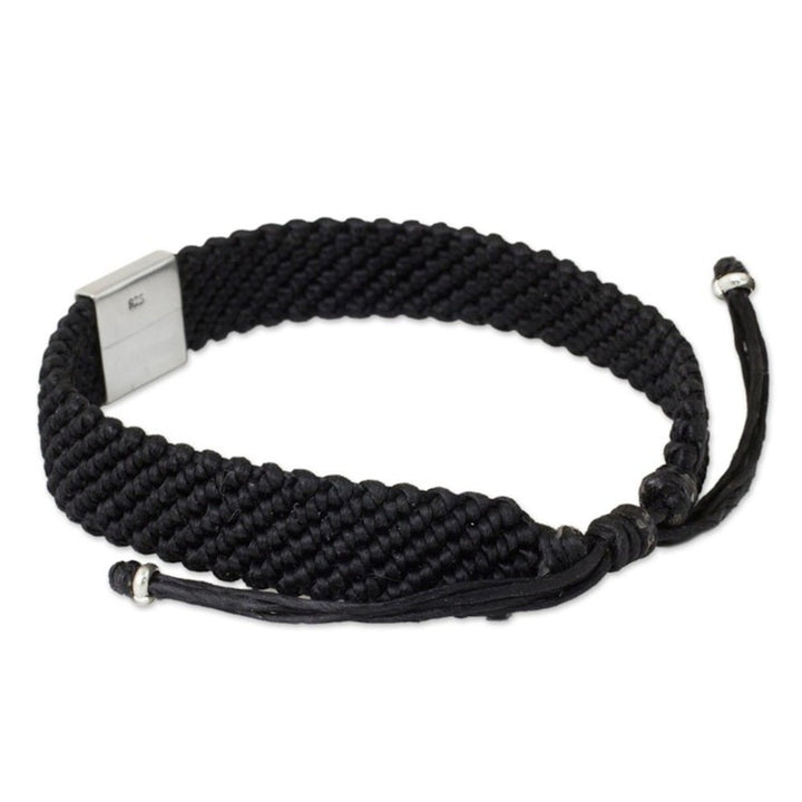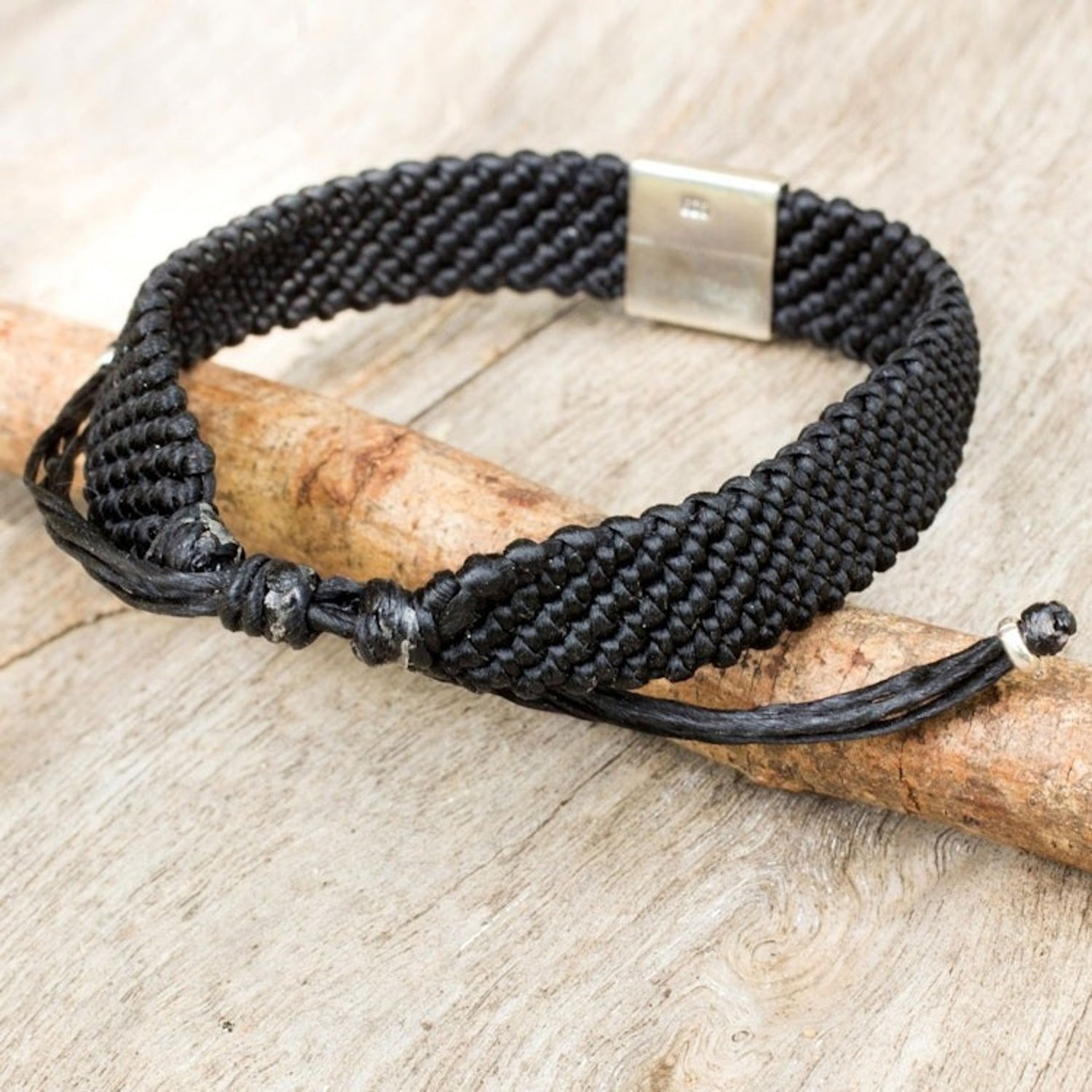 Handcrafted in Thailand from sterling silver and waxed polyester cords, this bracelet measures 7.3 to 11 inches in length with a width of 0.4 inches. The medallion measures 0.5 inches in length and 0.5 inches in width and has a combination finish.