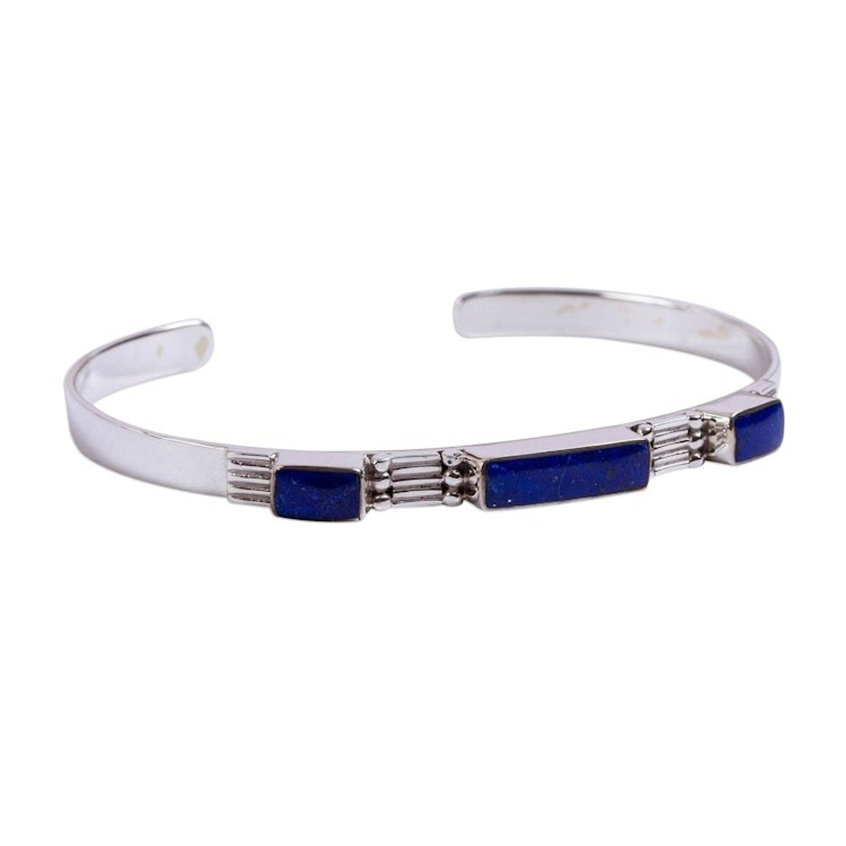 Taxco Lapis Lazuli Cuff Bracelet from Mexico 'Rectangular Blue'