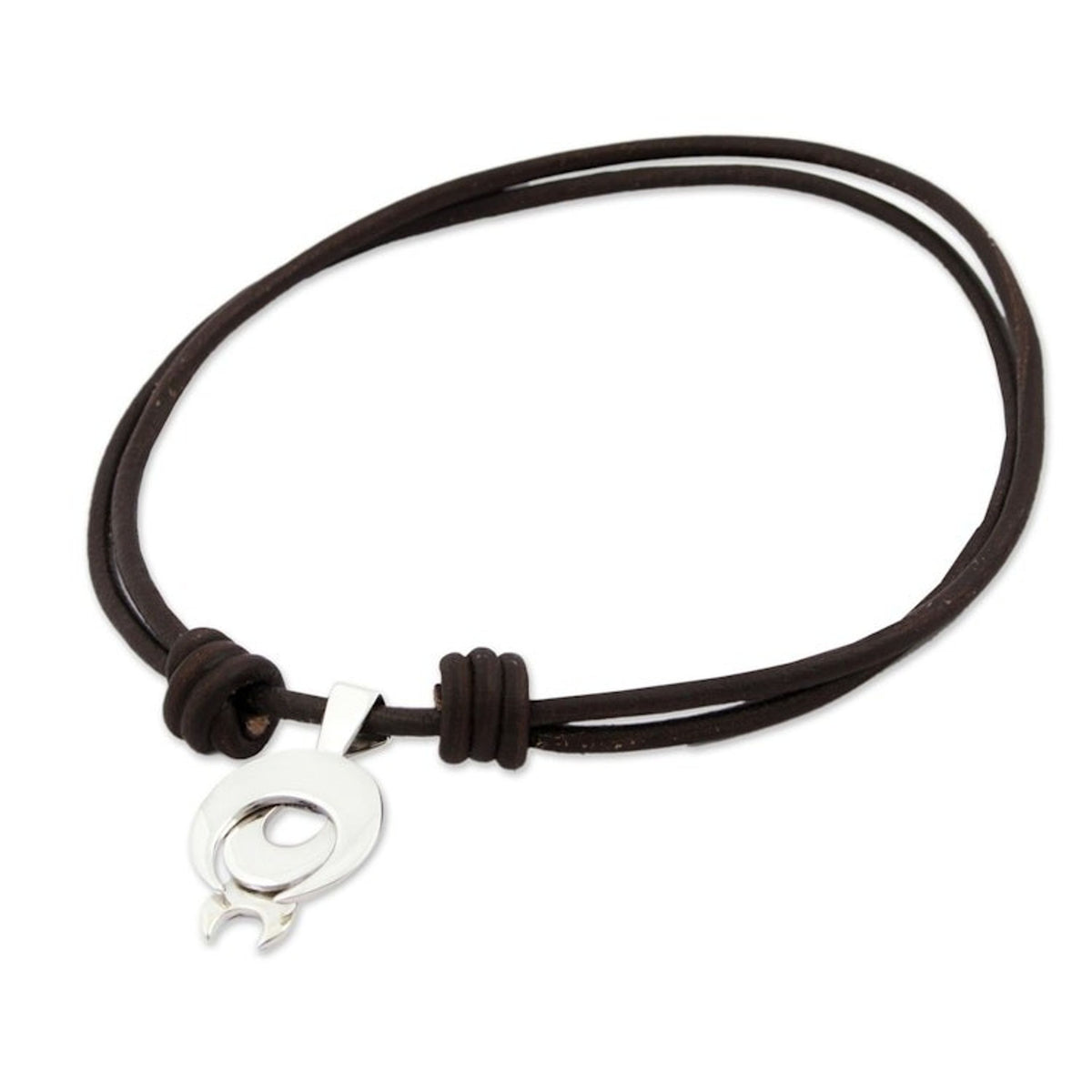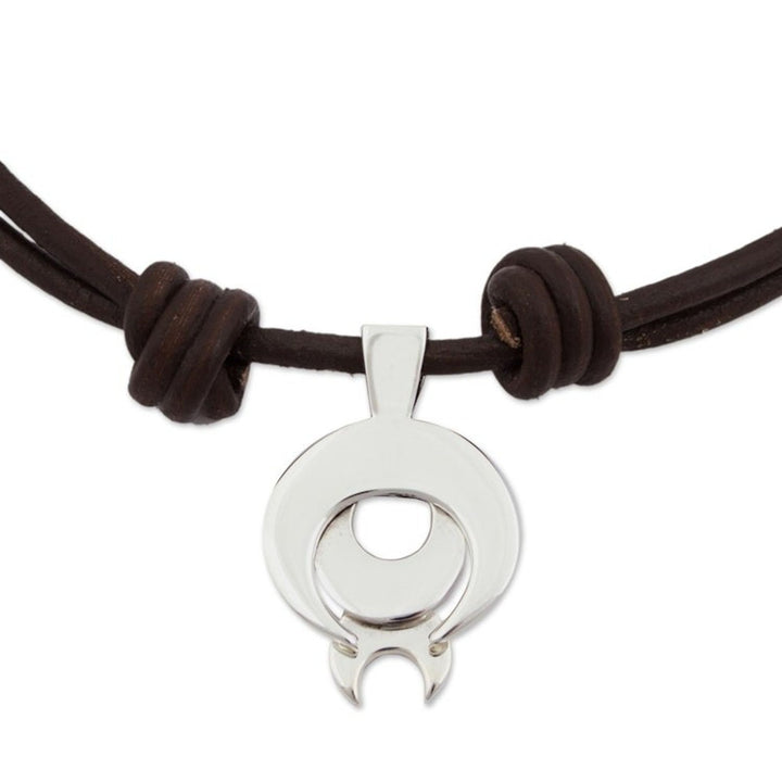 Handcrafted in Mexico from 925 sterling silver and leather cord, this pendant necklace has an adjustable length from 14.5 to 28 inches with a 3mm width, and the pendant measures 1.5 inches in length and 1 inch in width. It has a high-polish finish and secures with a sliding knot.