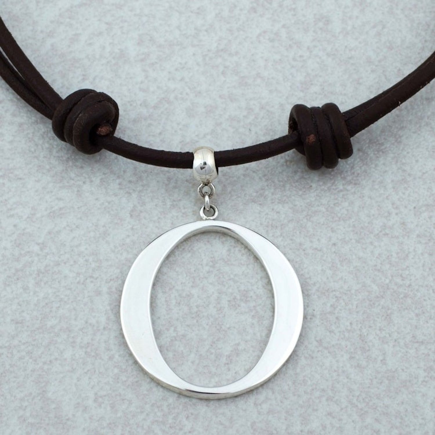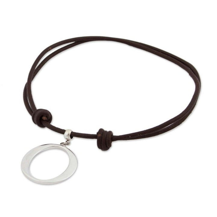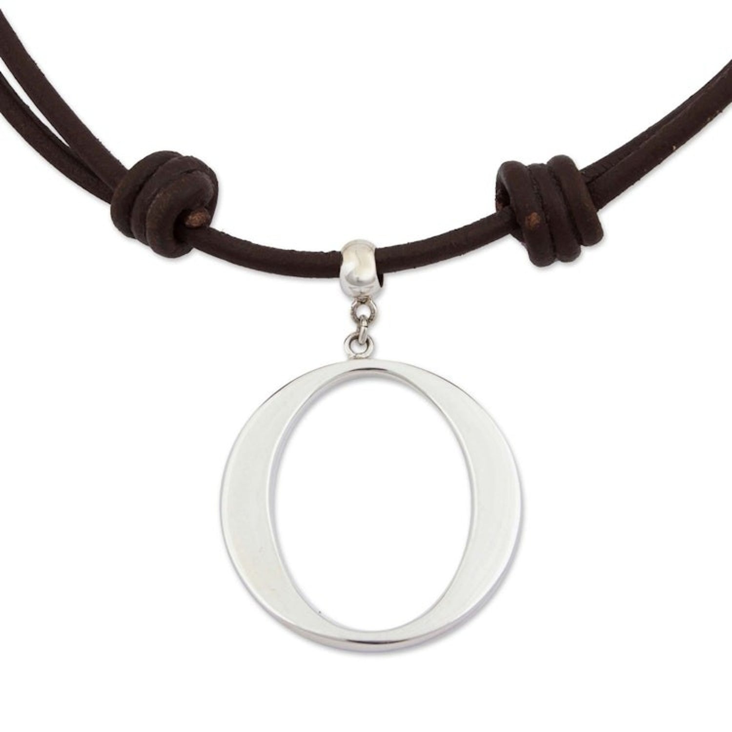 This 'Droplets of Life' necklace by Mikelo is a simple yet striking accessory. A ring of sterling silver hangs from a length of adjustable brown leather cord. This fantastic pendant necklace is sure to be noticed wherever it goes, and is a beautiful reflection of Mikelo's ability to create pieces that are hand-forged with traditional techniques.