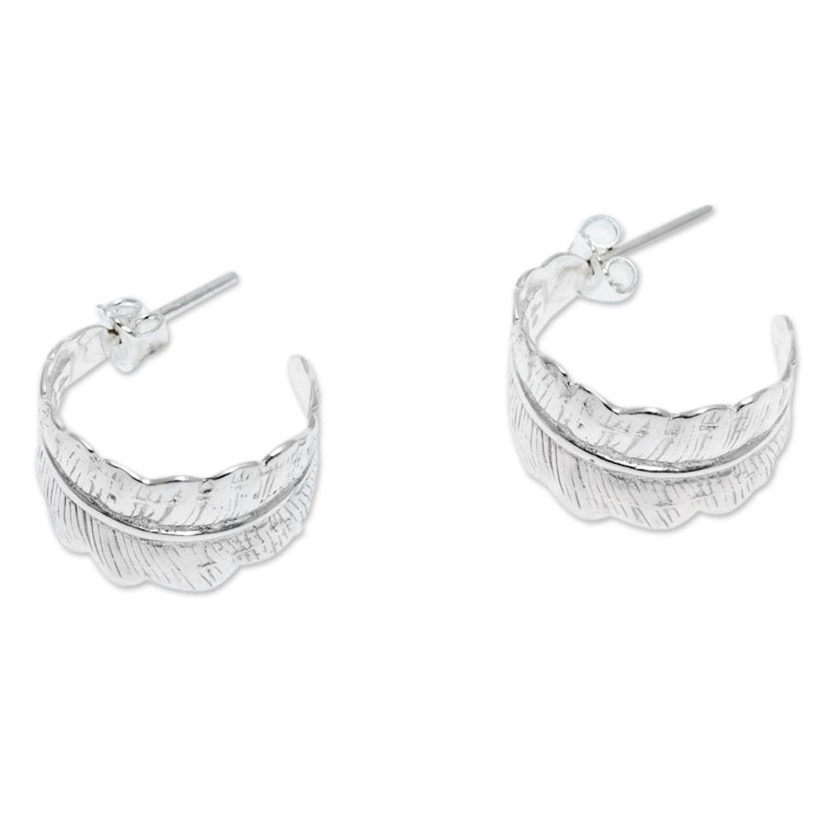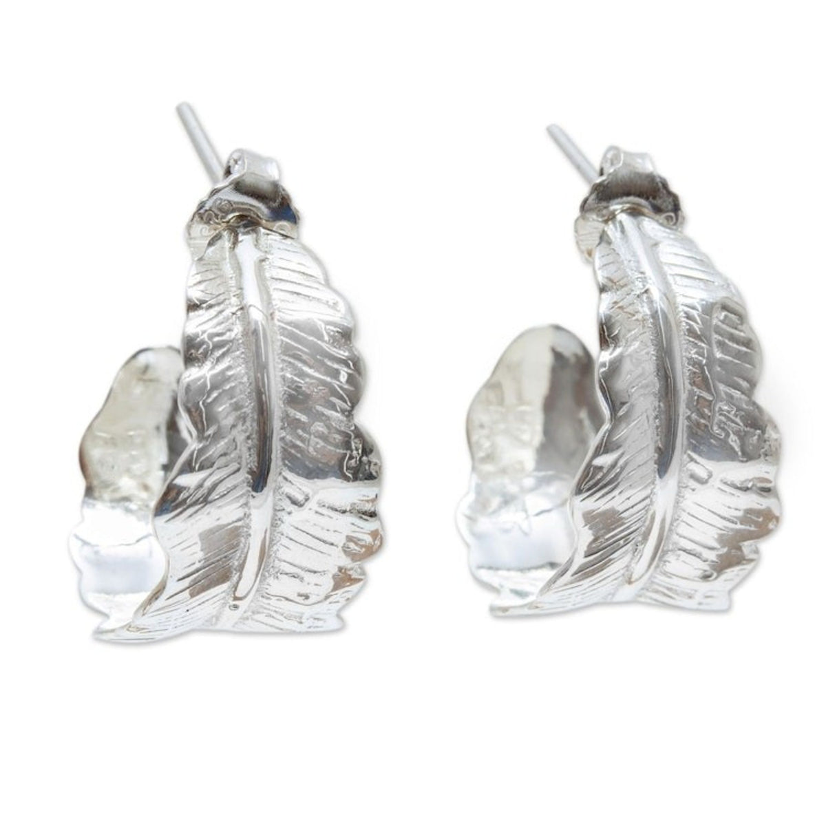 Taxco Sterling Silver Half Hoop Earrings with Leaf Motif 'Mexican Fall'