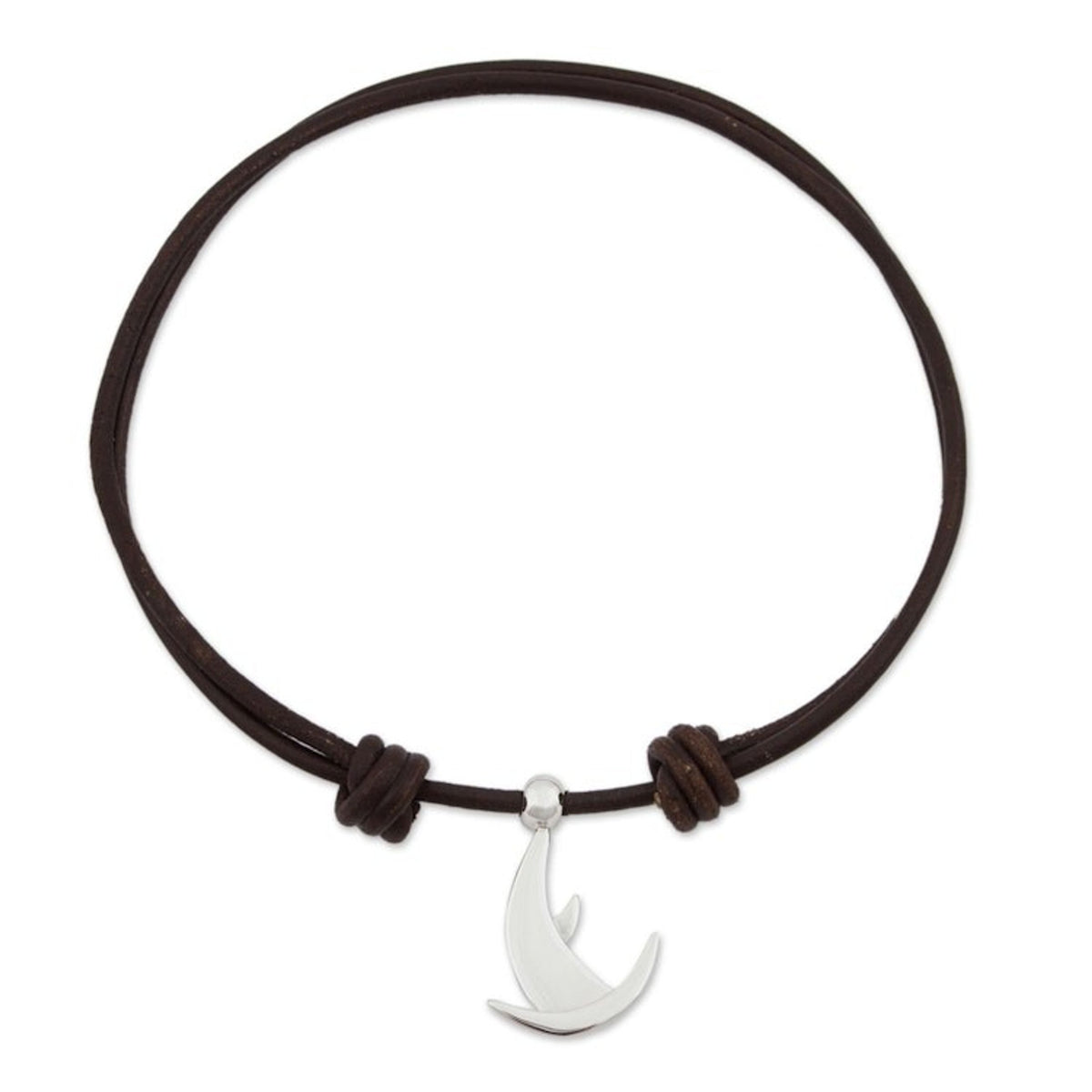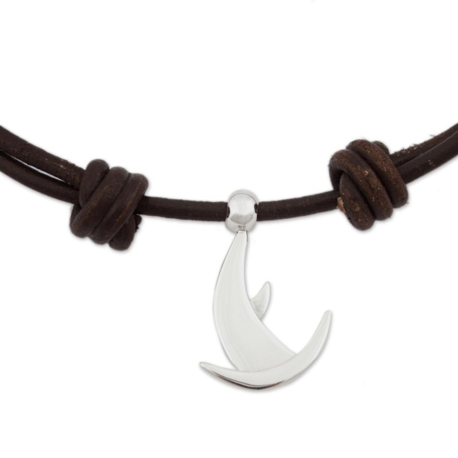 Handcrafted in Mexico from 925 sterling silver and leather cord, this pendant necklace has an adjustable length from 15 to 28 inches with a 3mm width, and the pendant measures 1.5 inches in length and 1 inch in width. It has a high-polish finish and secures with a sliding knot.