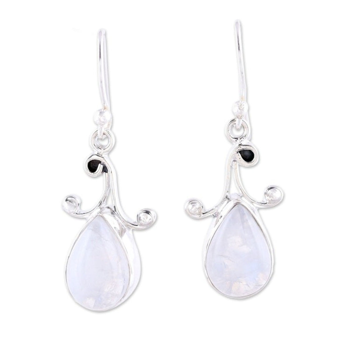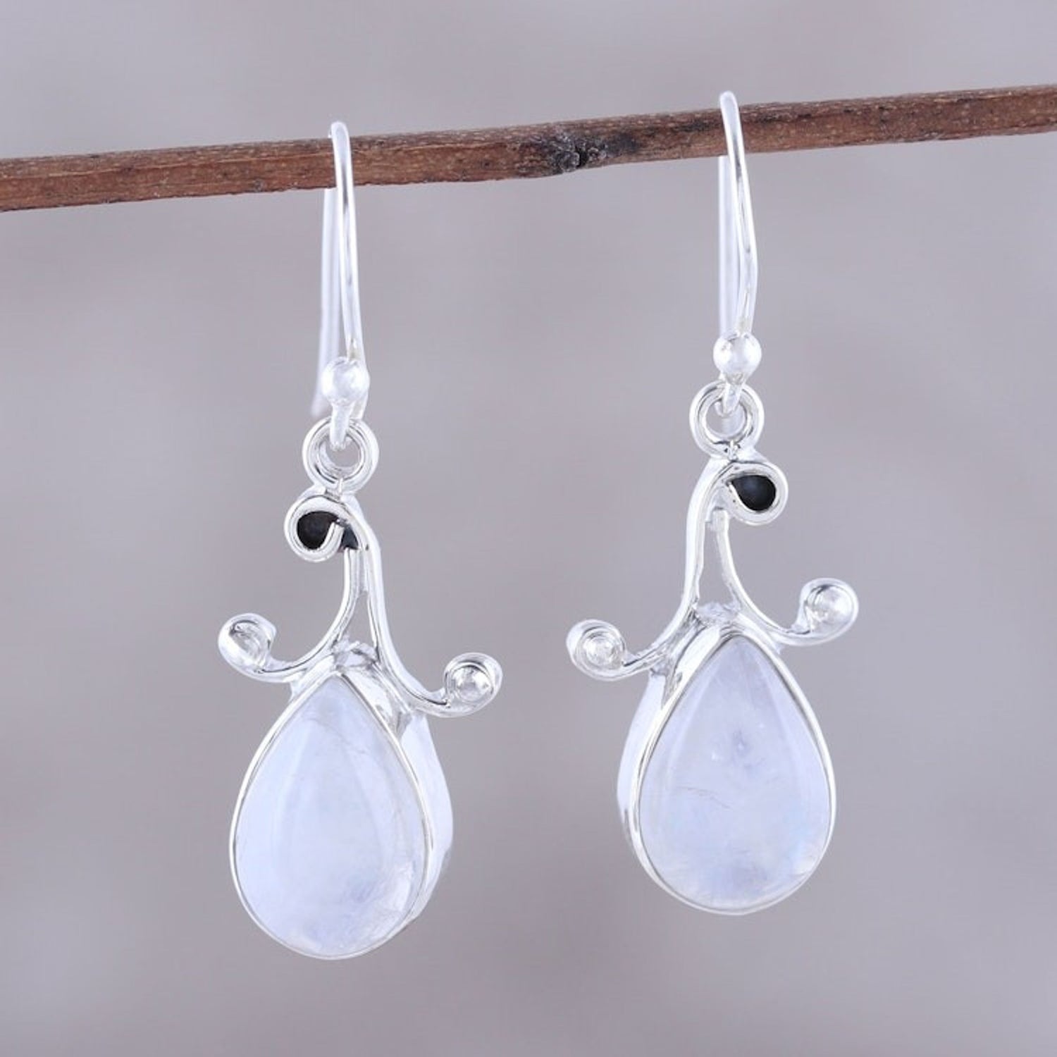 These 'Lustrous Drops' earrings by Shanker are a beautiful accessory. Two lustrous teardrops of natural rainbow moonstone are featured in this pair of dangle earrings, crafted of sterling silver. The design is a beautiful reflection of Shanker's perseverance, tradition, and passion for his craft.