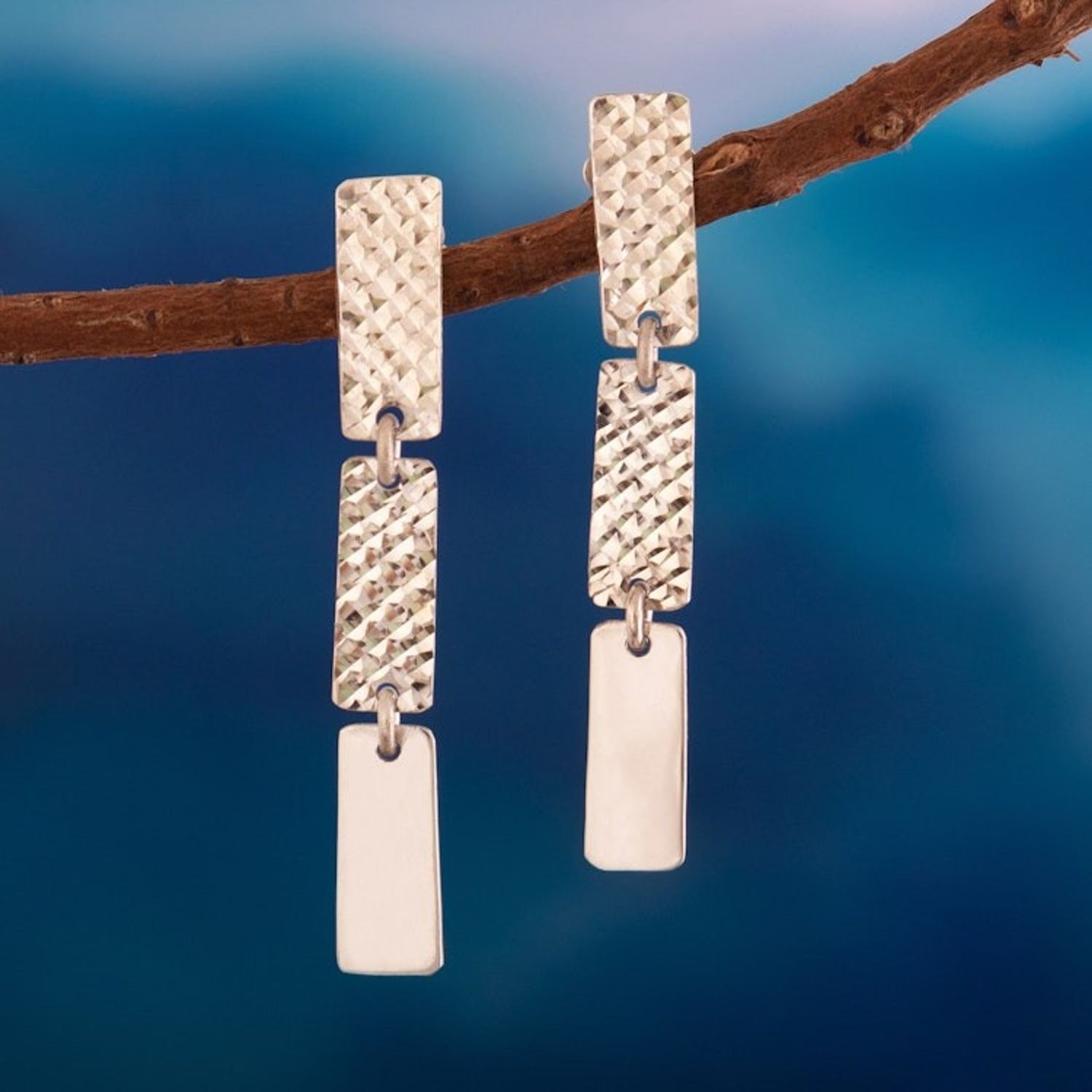 Textured Sterling Silver Dangle Earrings Made in Peru 'Textured Links'