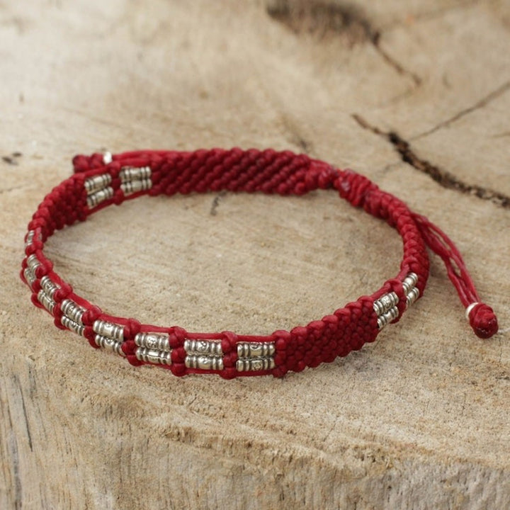 Thai Braided Red Cord Bracelet with 950 Silver Beads 'Affinity in Red'