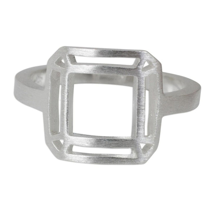 Thai Brushed Sterling Silver Geometric Cocktail Ring 'Satin Window'