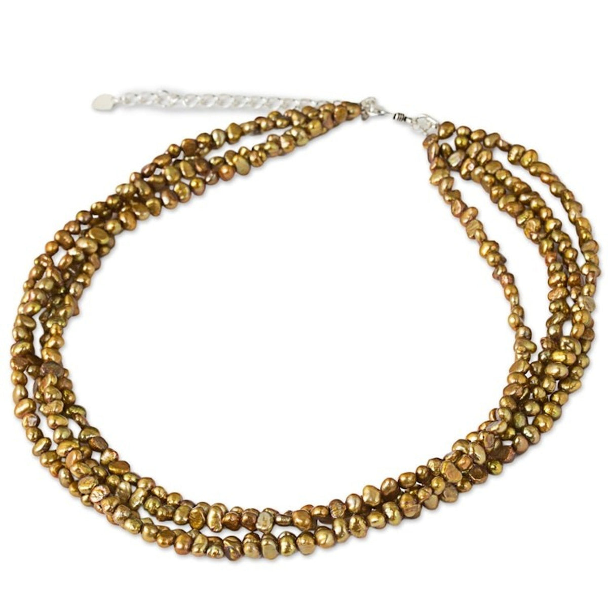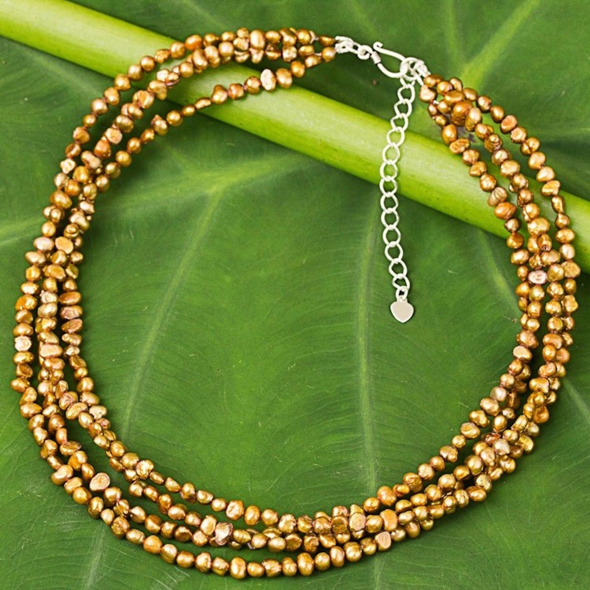 Thai Four-Strand Cultured Pearl Necklace in Golden Brown 'Golden Brown Nuggets'