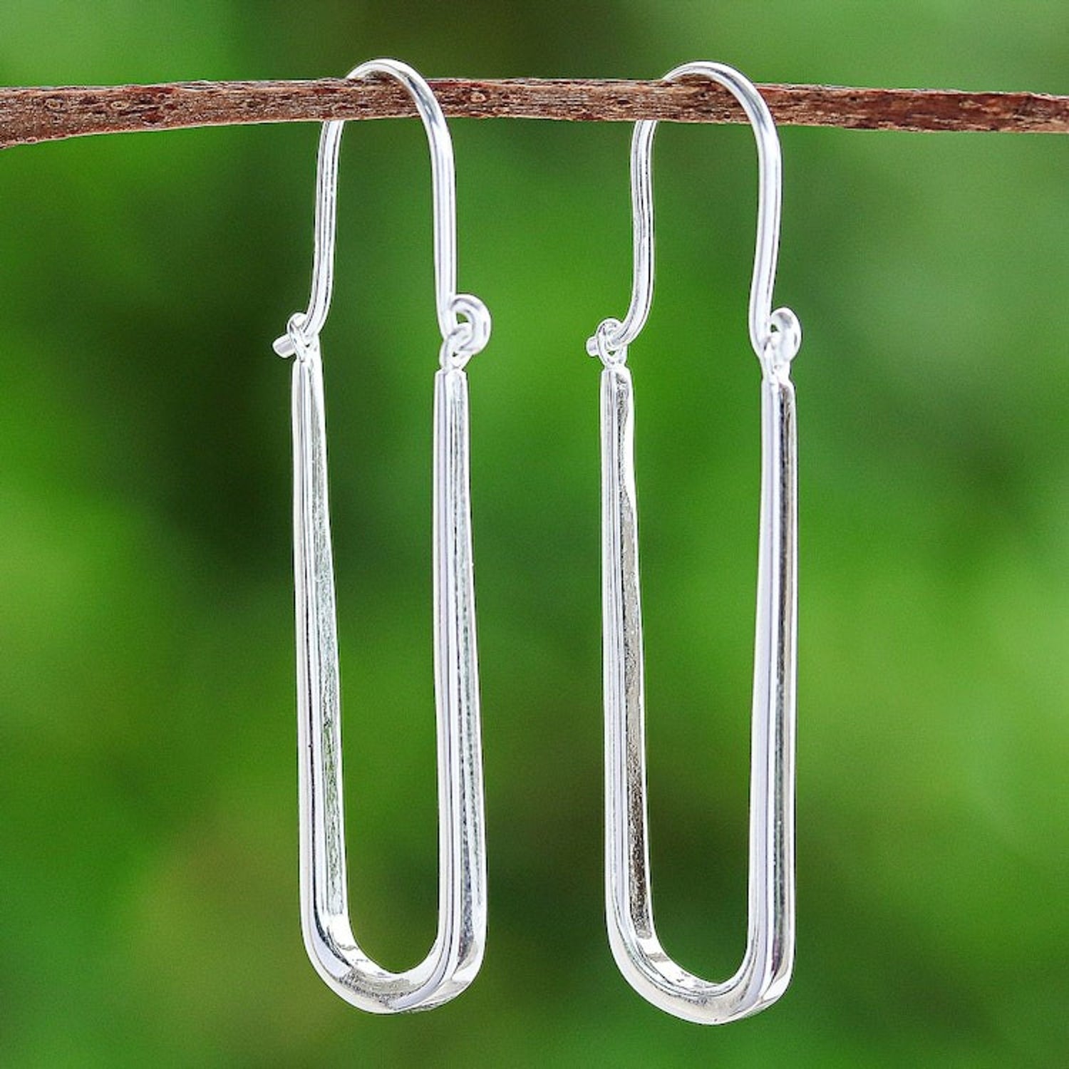 Thai-Made Minimalist Sterling Silver Oblong Hoop Earrings 'Grand Class'