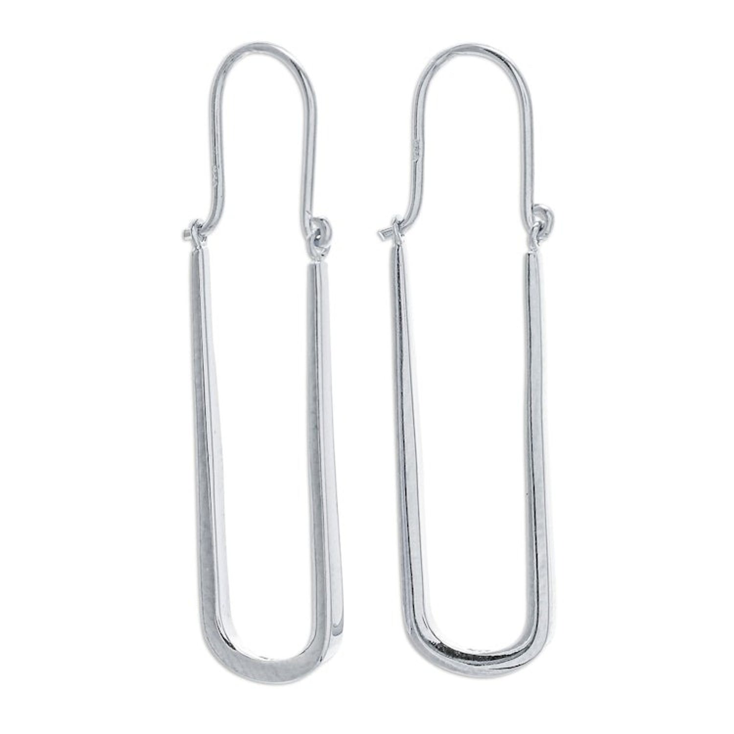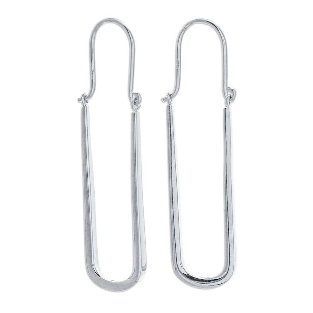 Handcrafted in Thailand from 925 sterling silver, these oblong hoop earrings measure 1.4 inches in length and 0.4 inches in width. They have a high-polish finish and secure with a saddleback / sea catch clasp.
