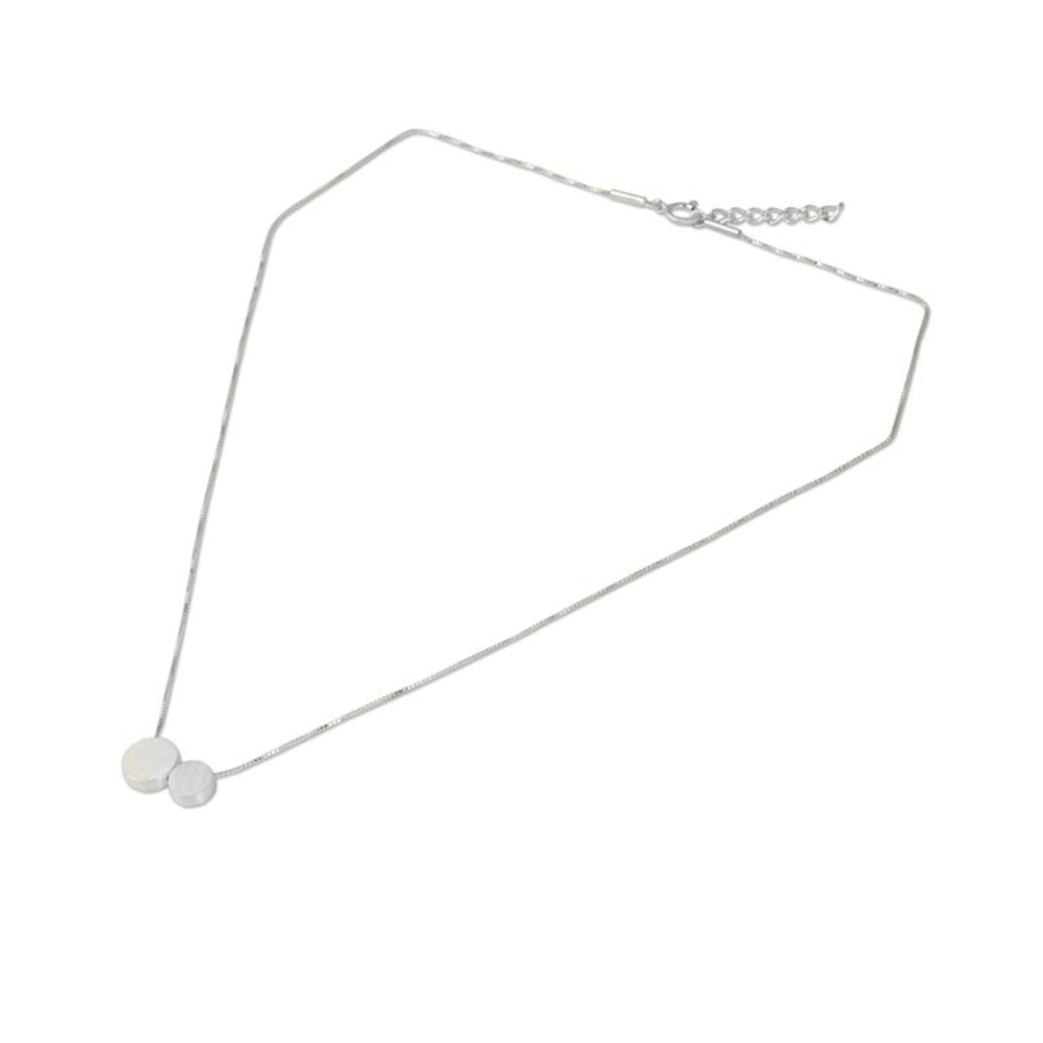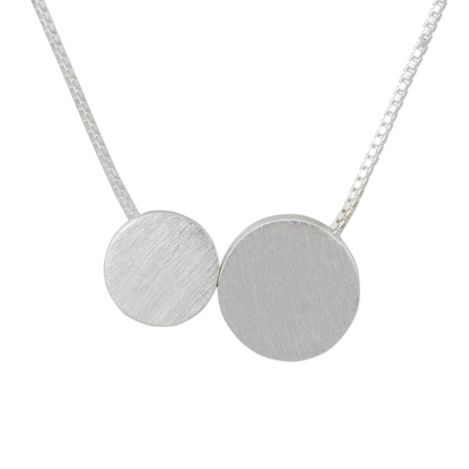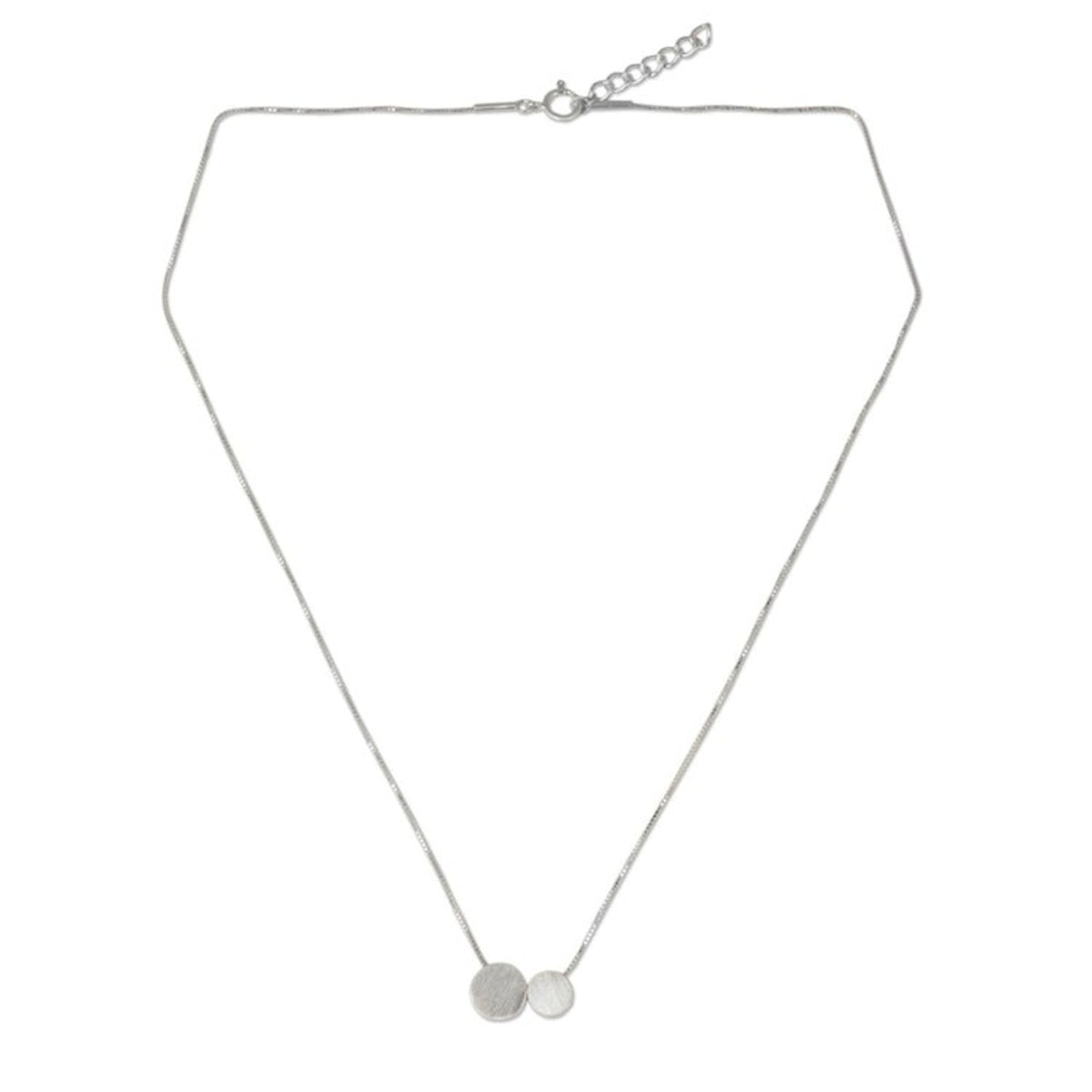 Handcrafted in Thailand from sterling silver, this necklace has a length of 17.8 inches with a 1mm width, and the larger pendant measures 0.4 inches in diameter. It has a brushed-satin finish and secures with a spring ring clasp.