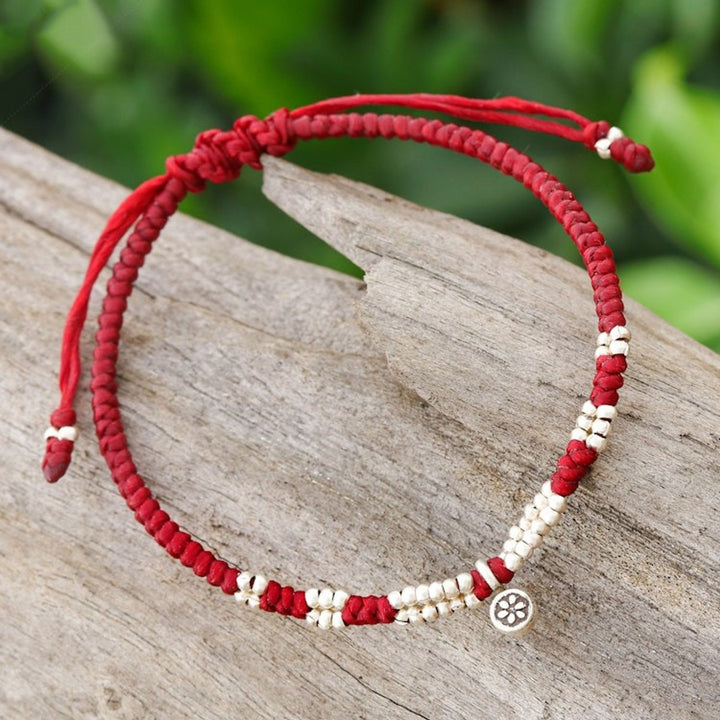 Thai Silver Pendant Beaded Macrame Bracelet in Red 'Petite Flower in Red'