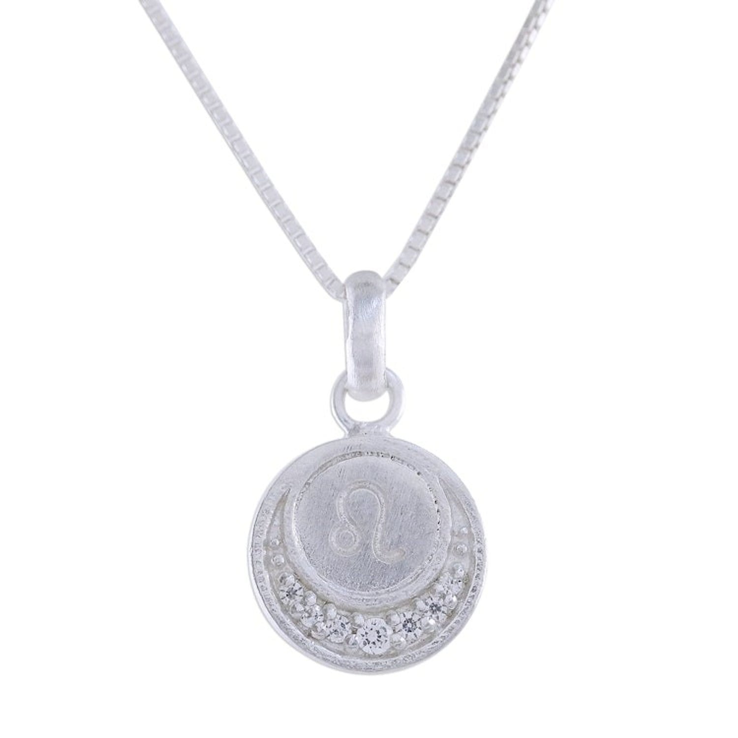 Thai Sterling Silver Cubic Zirconia Leo Pendant Necklace 'Zodiac Charm Leo'