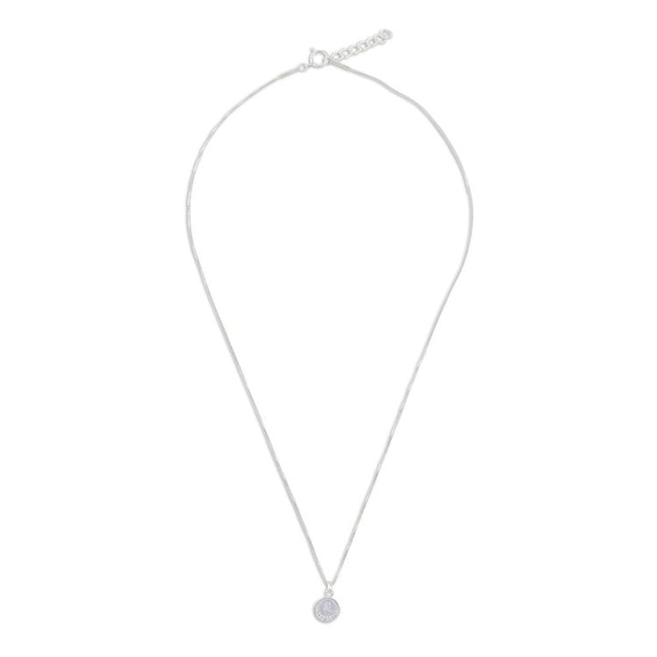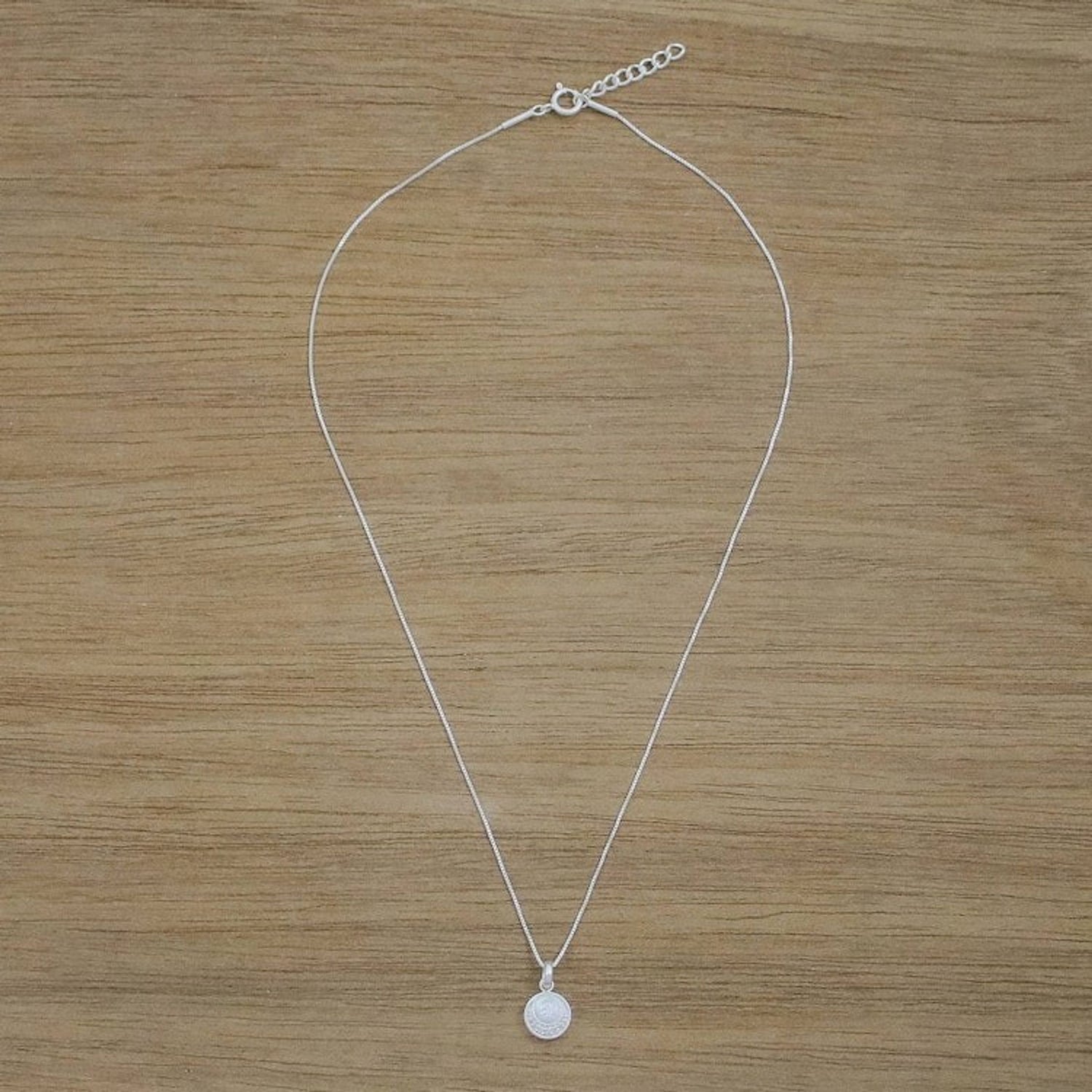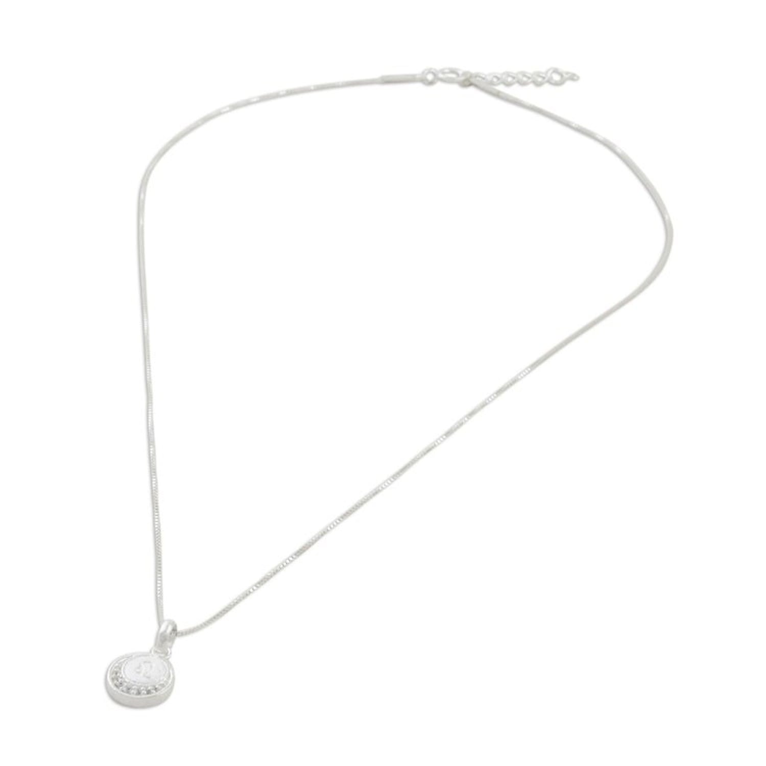 Handcrafted in Thailand from 925 sterling silver and cubic zirconia, this pendant necklace has a length of 18 inches with a 1mm width, and the pendant measures 0.1 inches in height and 0.4 inches in diameter. It has a brushed-satin finish and secures with a spring ring clasp.