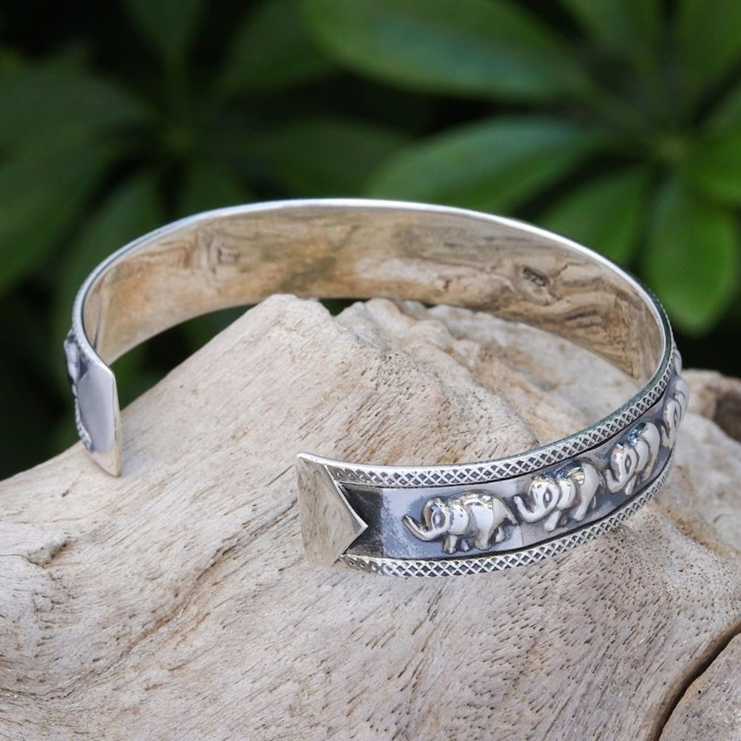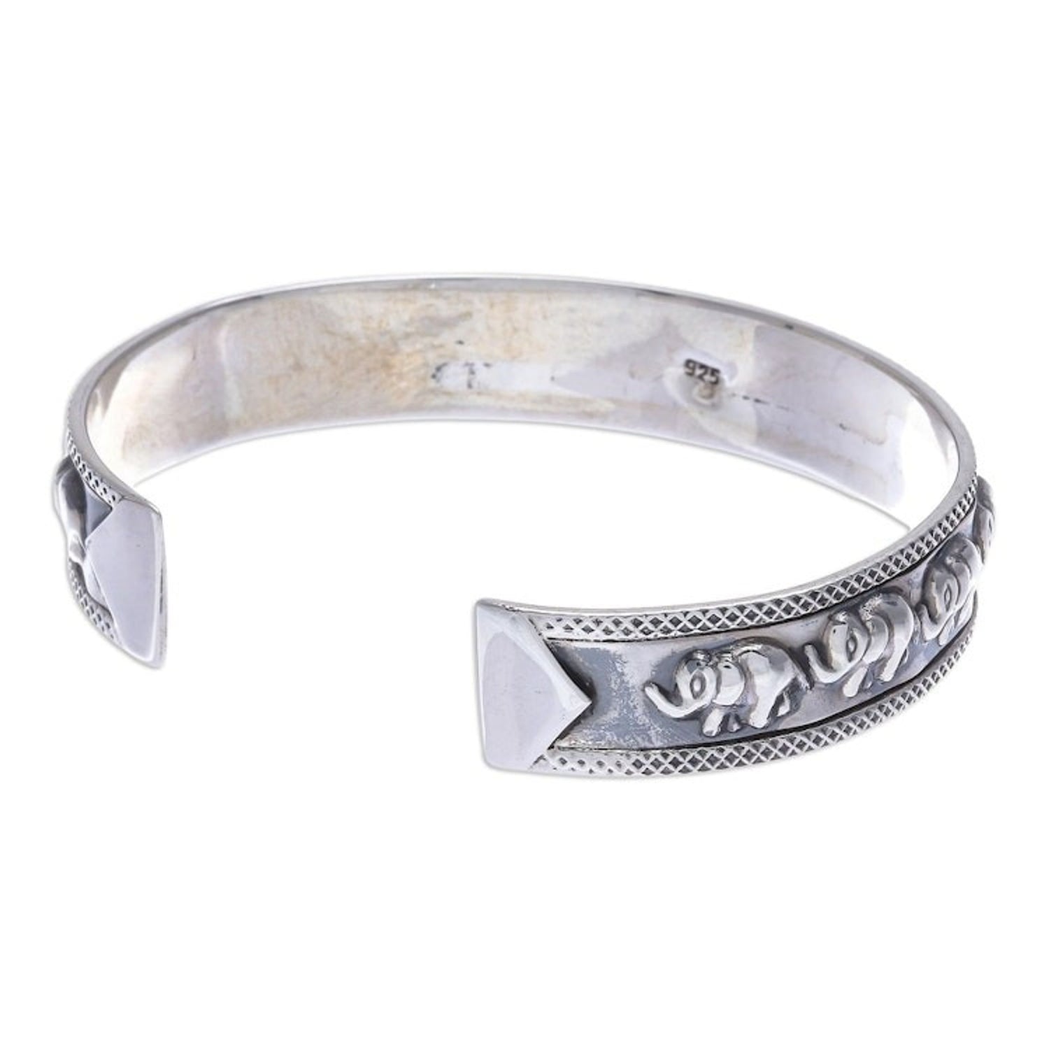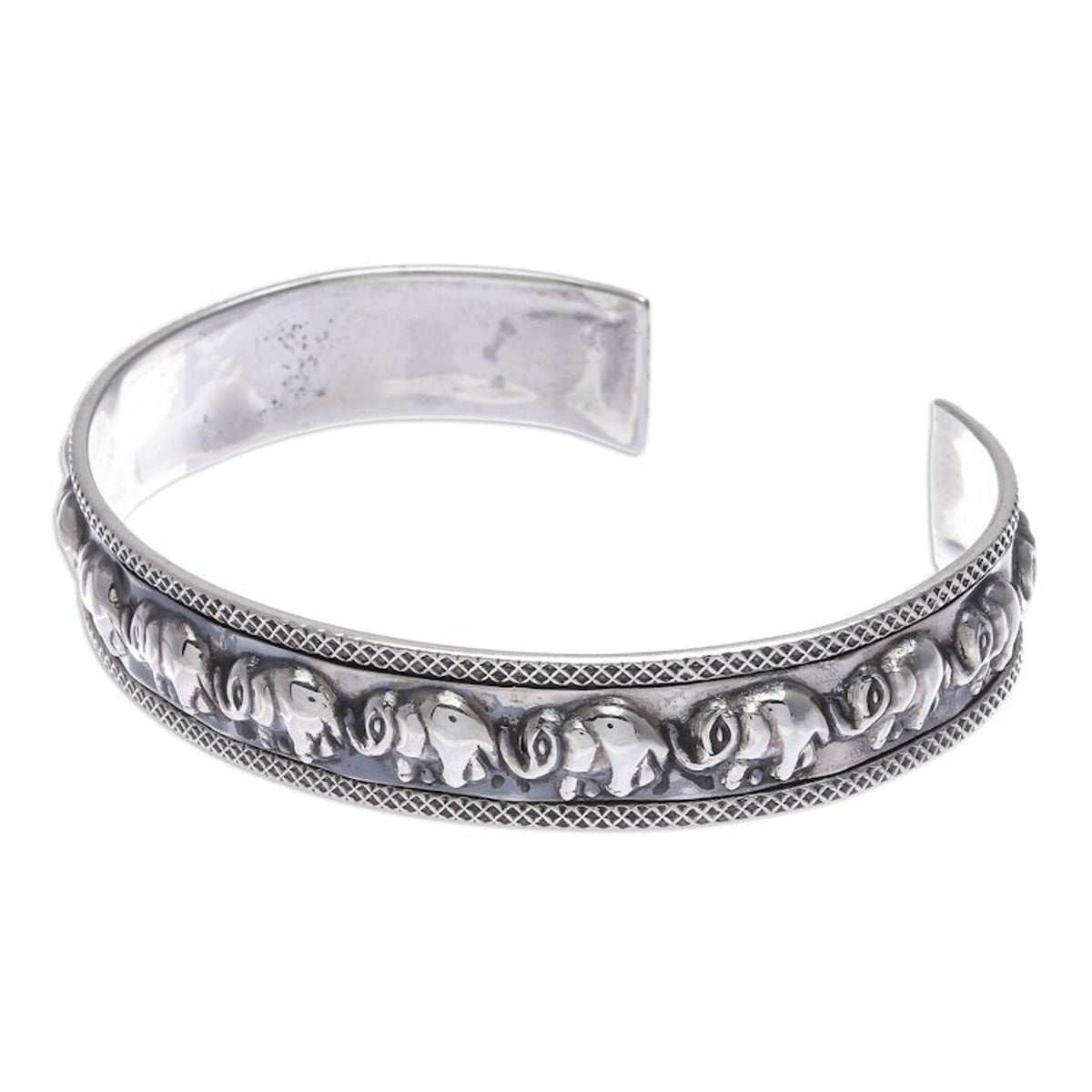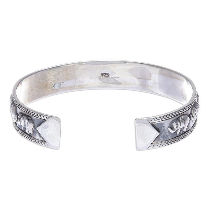 Thai Sterling Silver Elephant-Motif Cuff Bracelet 'On Parade in Large'