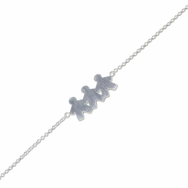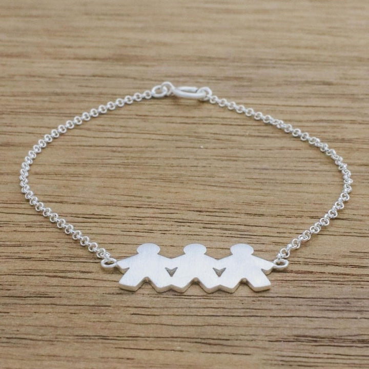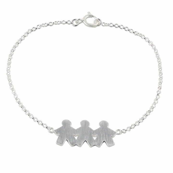 This 'Three Sons' bracelet by Jantana is a beautiful accessory. Thai artisan Jantana designs this sterling silver bracelet which features a pendant centering a rolo chain. The pendant, hand-cut from a sheet of silver, shows the figures of three friends holding hands. The bracelet features a brushed-satin finish and closes with a spring-ring clasp. This piece is a beautiful reflection of Jantana's dedication to creating jewelry that is a way to share joy, beauty, and craftsmanship with the world.