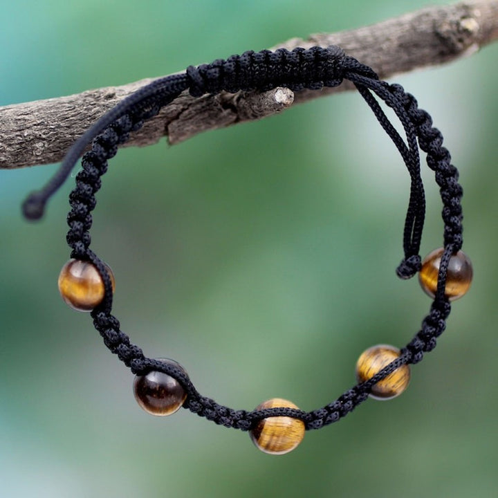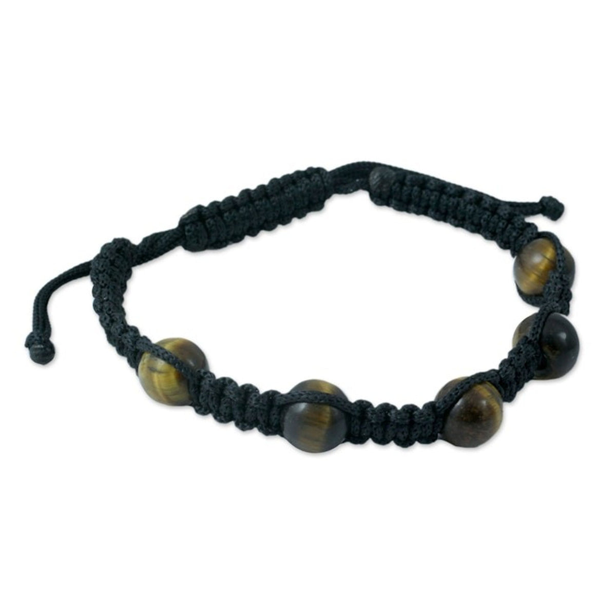 Handcrafted in India from tiger's eye on nylon threads, this bracelet has an adjustable inner circumference from 5 to 8.8 inches with a 0.4 inch width.