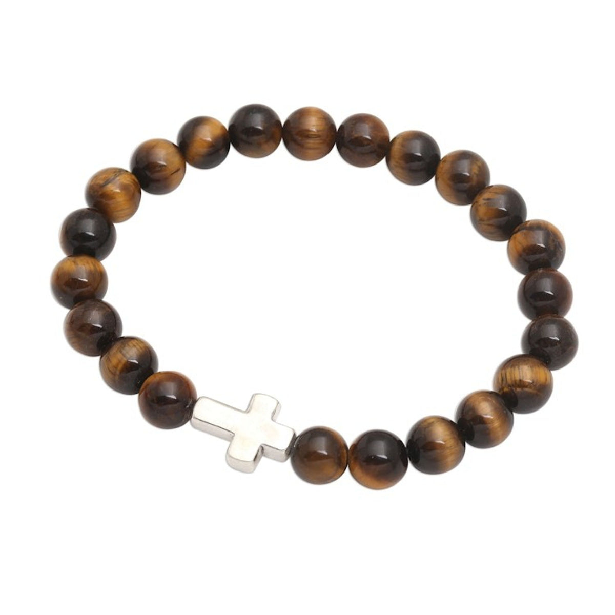 Tiger's Eye Bracelet with Silver Cross Pendant 'Faith in Brown'