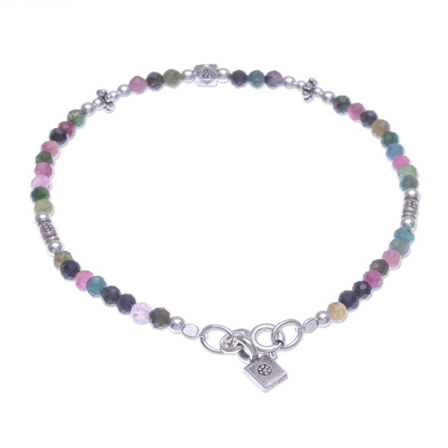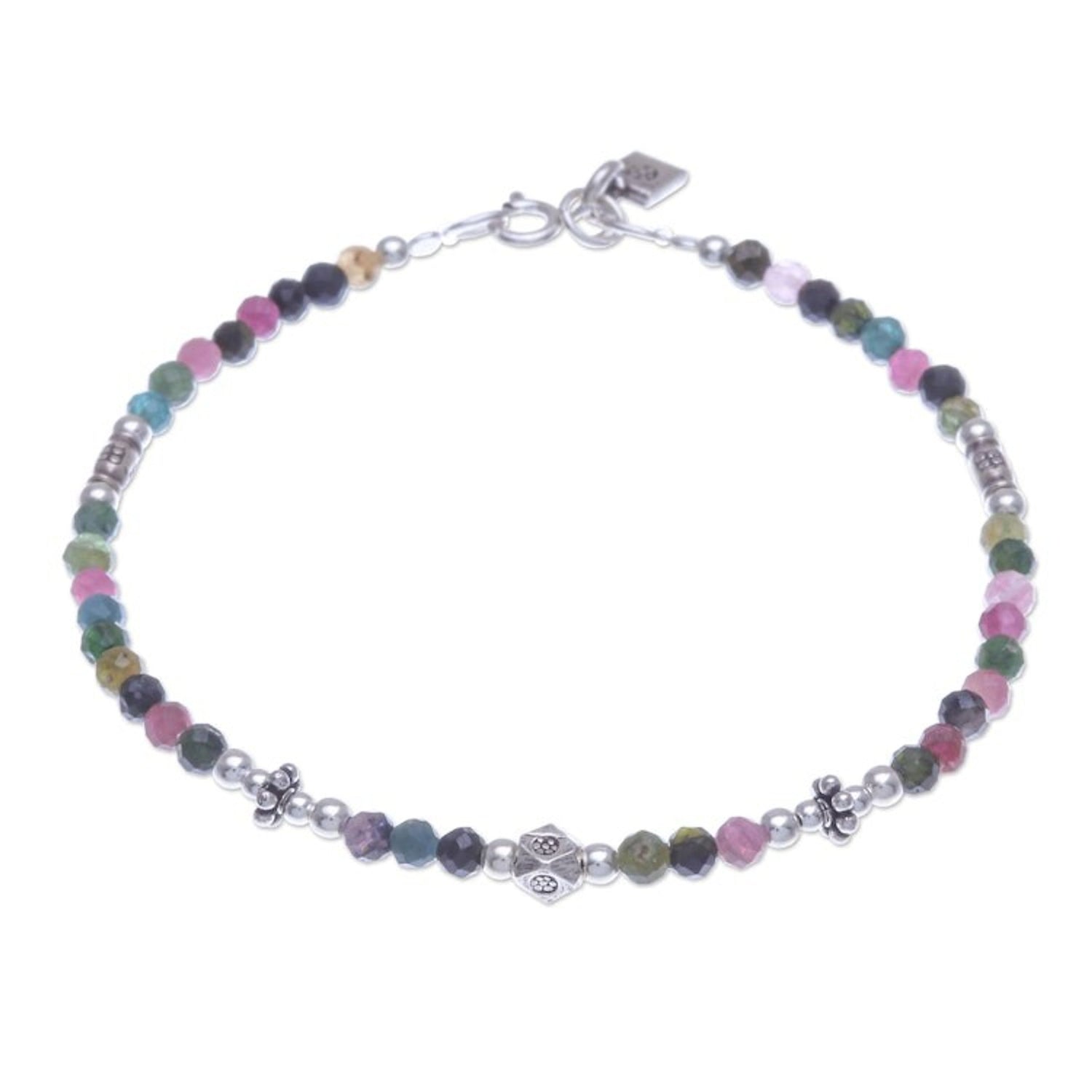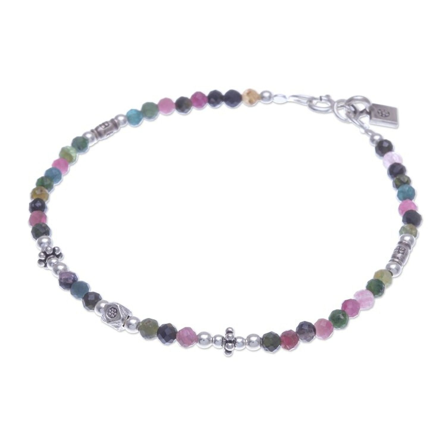 This 'Sweet Taste' bracelet by Siranya is a charming accessory. The bright, multicolored beads on this charming bracelet are sure to make it your new favorite accessory. The artisan hand threads faceted tourmaline gems together to create the strand, while stamped 950 silver beads and sterling silver orbs add glimmering shine. This piece is a beautiful reflection of Siranya's dedication to creating jewelry that is shaped by imagination and storytelling.
