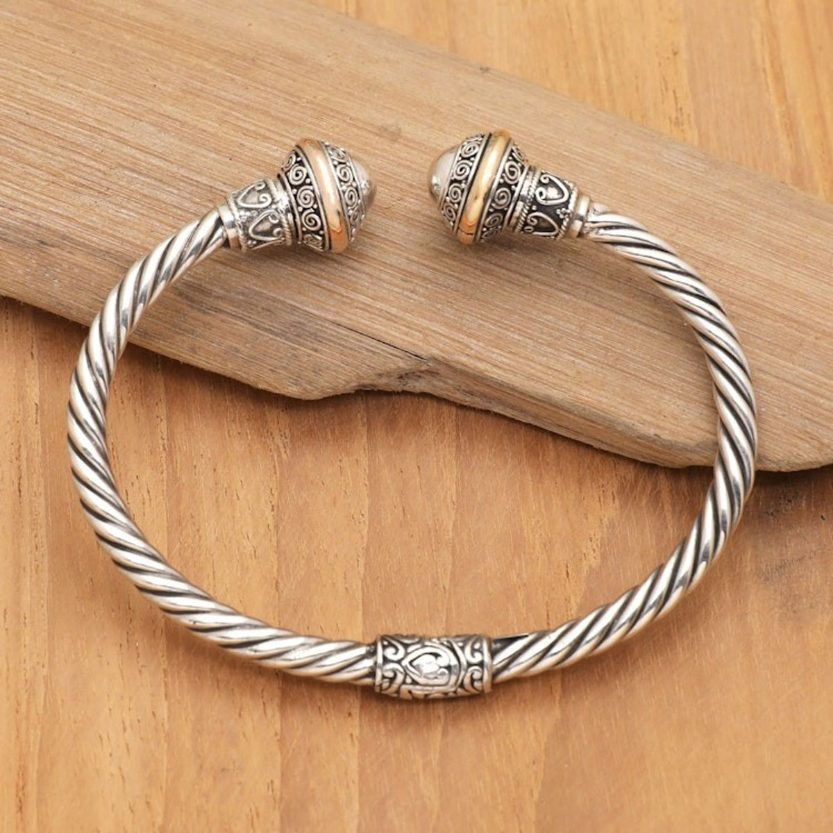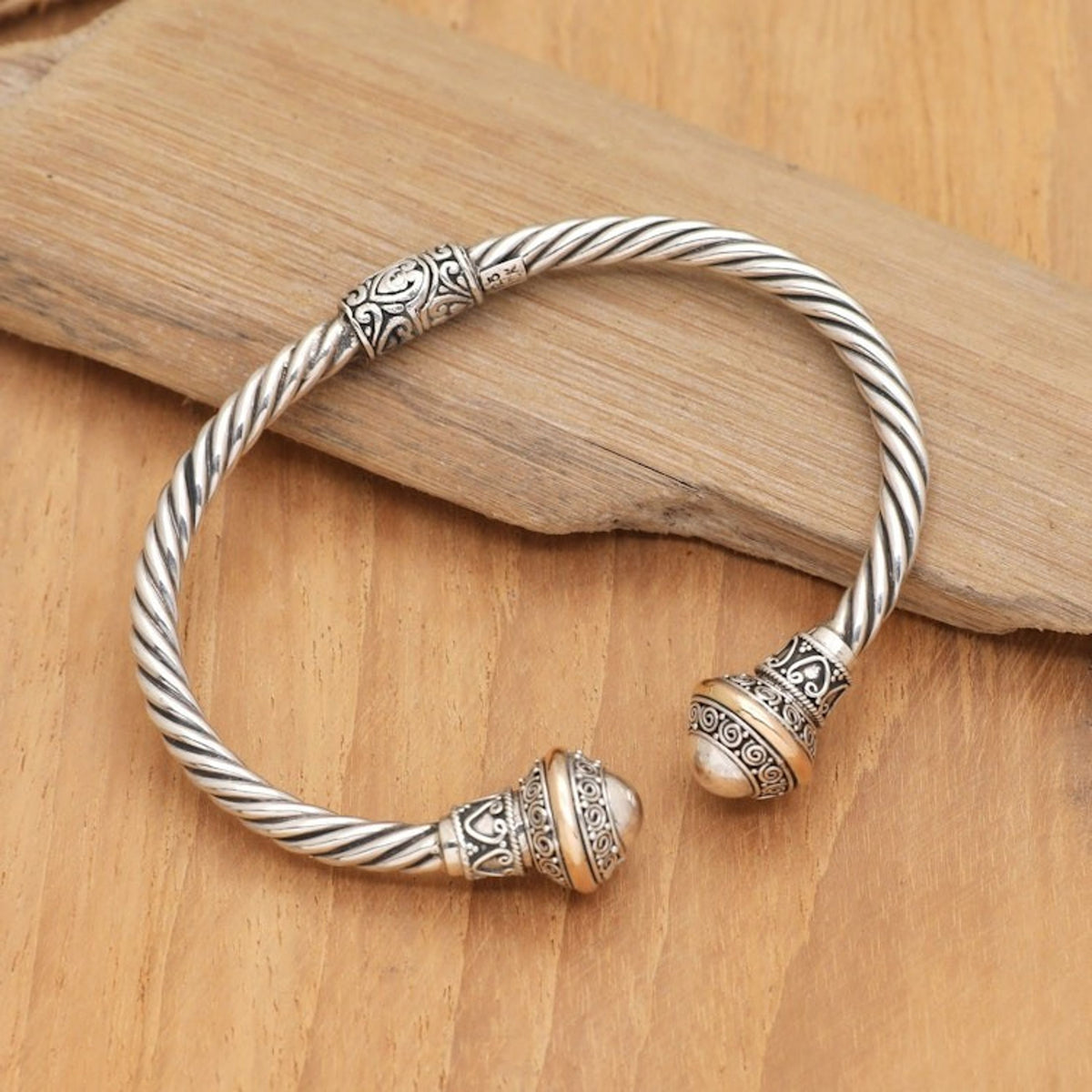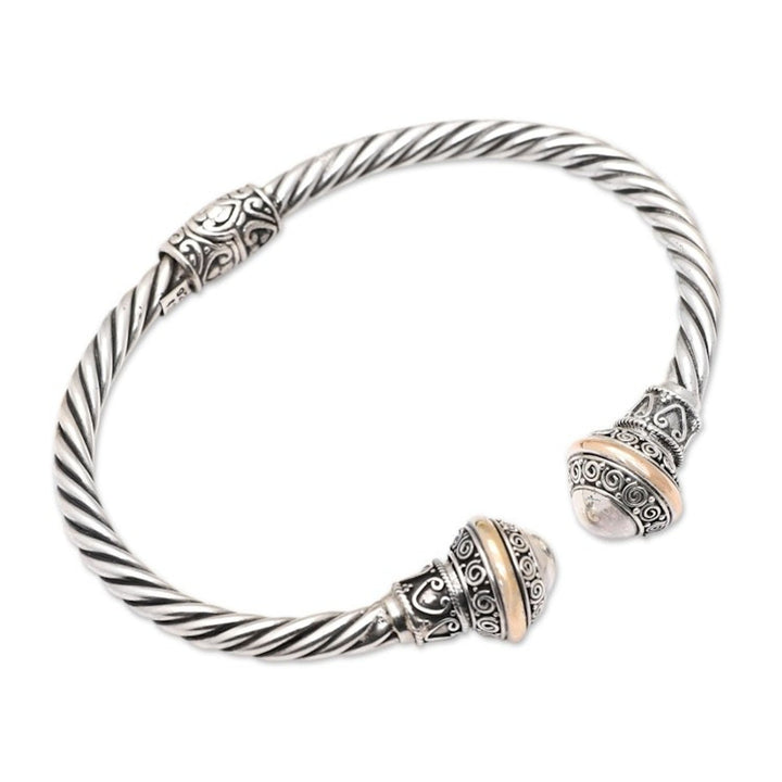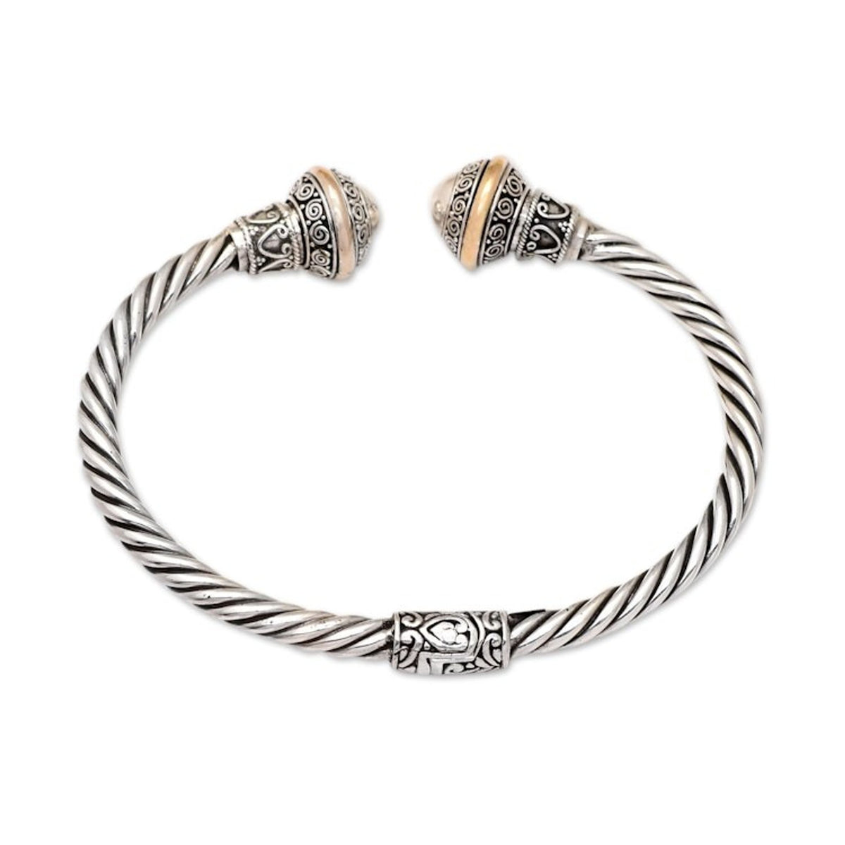 Traditional 18k Gold-Accented Sterling Silver Cuff Bracelet 'Paradisiacal Harmony'