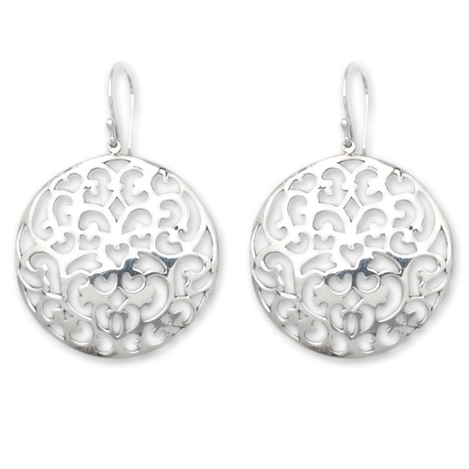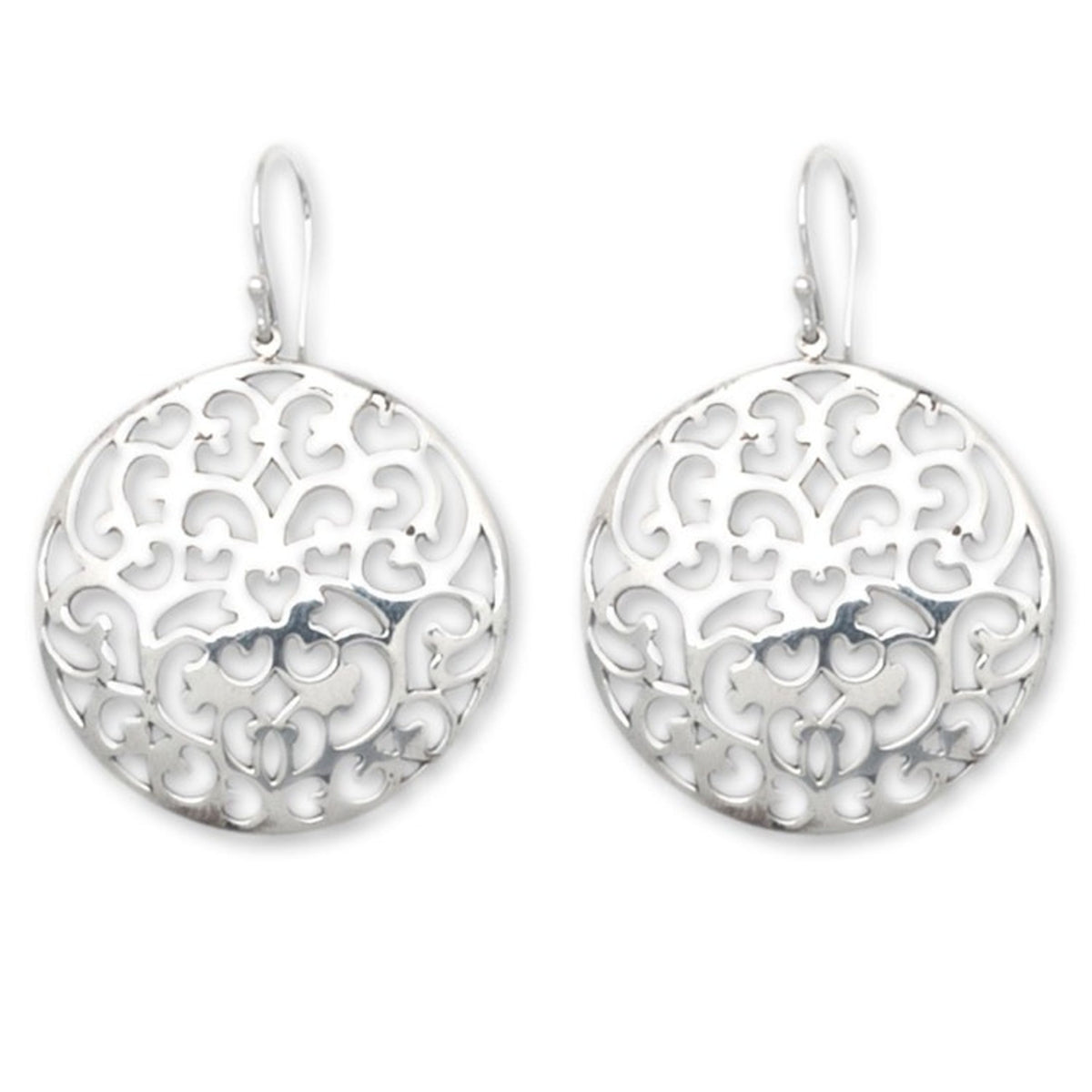 Traditional Leafy Round Sterling Silver Dangle Earrings 'Eden of Love'