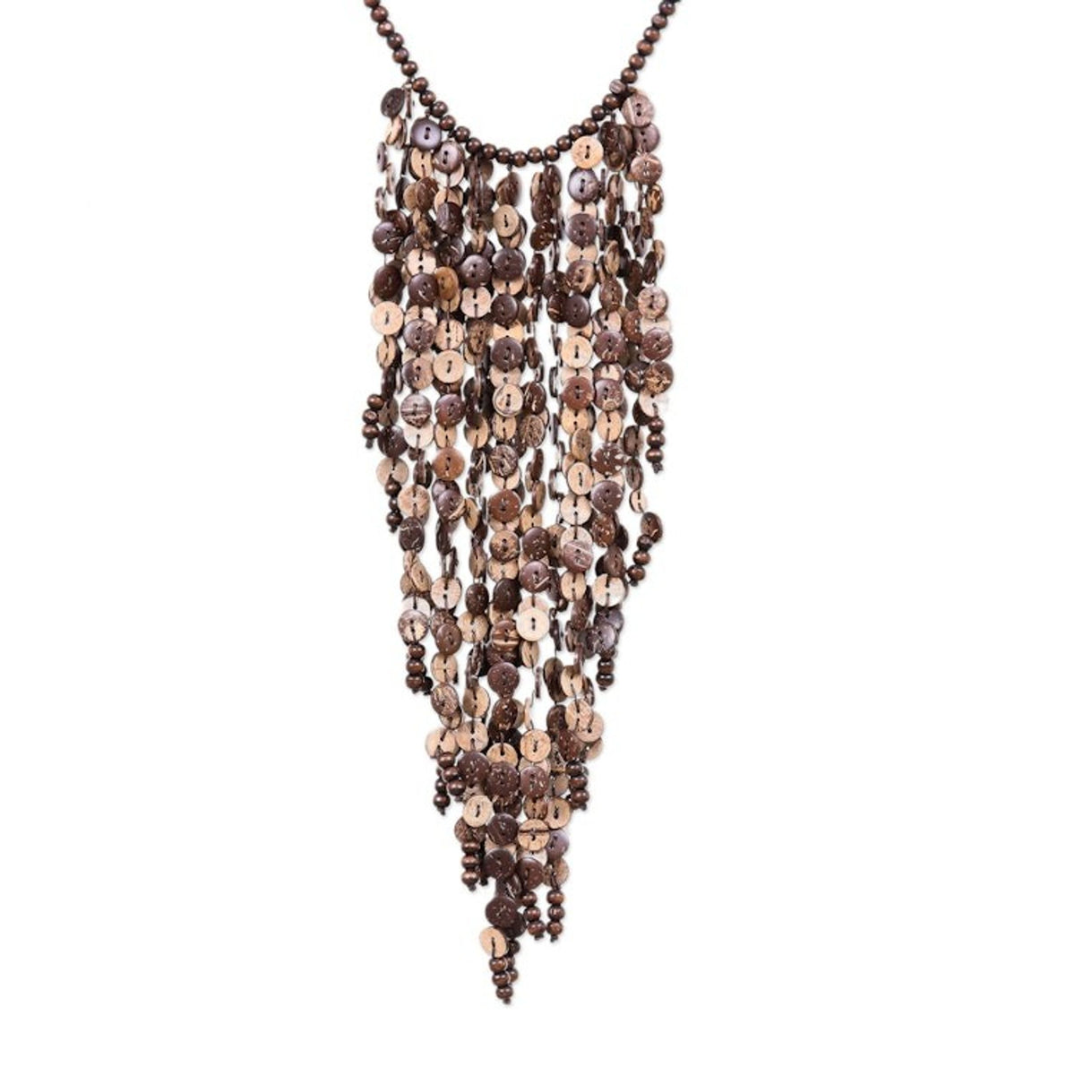 Tropical Wood and Coconut Shell Waterfall Necklace 'Tropical Waterfall'