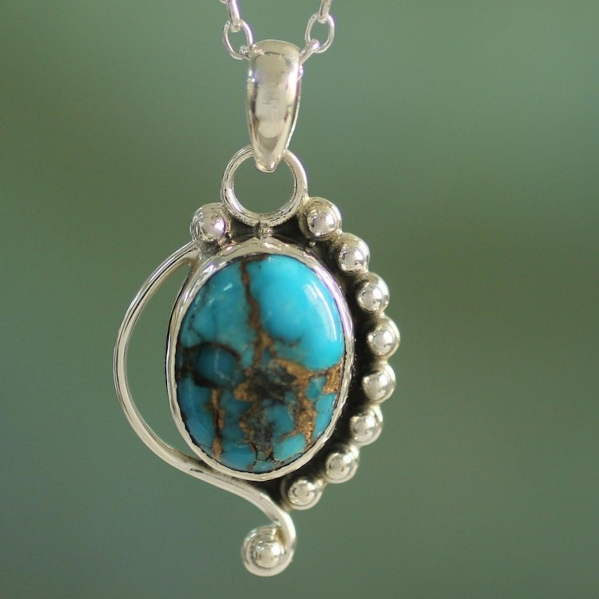 Turquoise Jewelry Indian Sterling Silver Necklace 'Blue Indian Paisley'