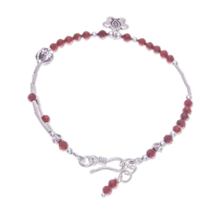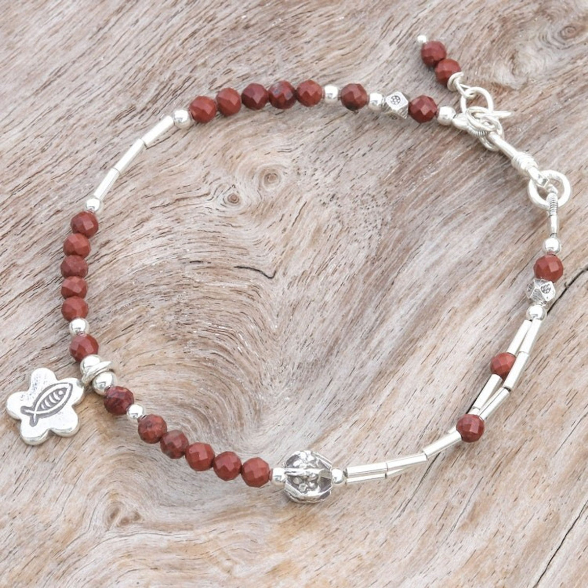 Two-Carat Jasper and Silver Beaded Fish Charm Bracelet 'Prosperous Strength'