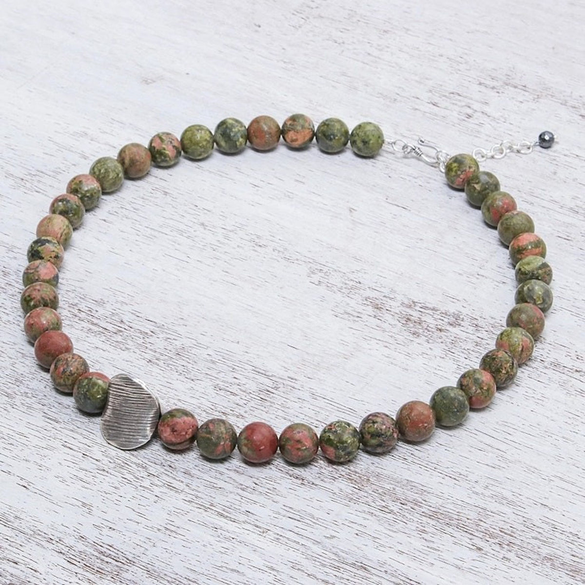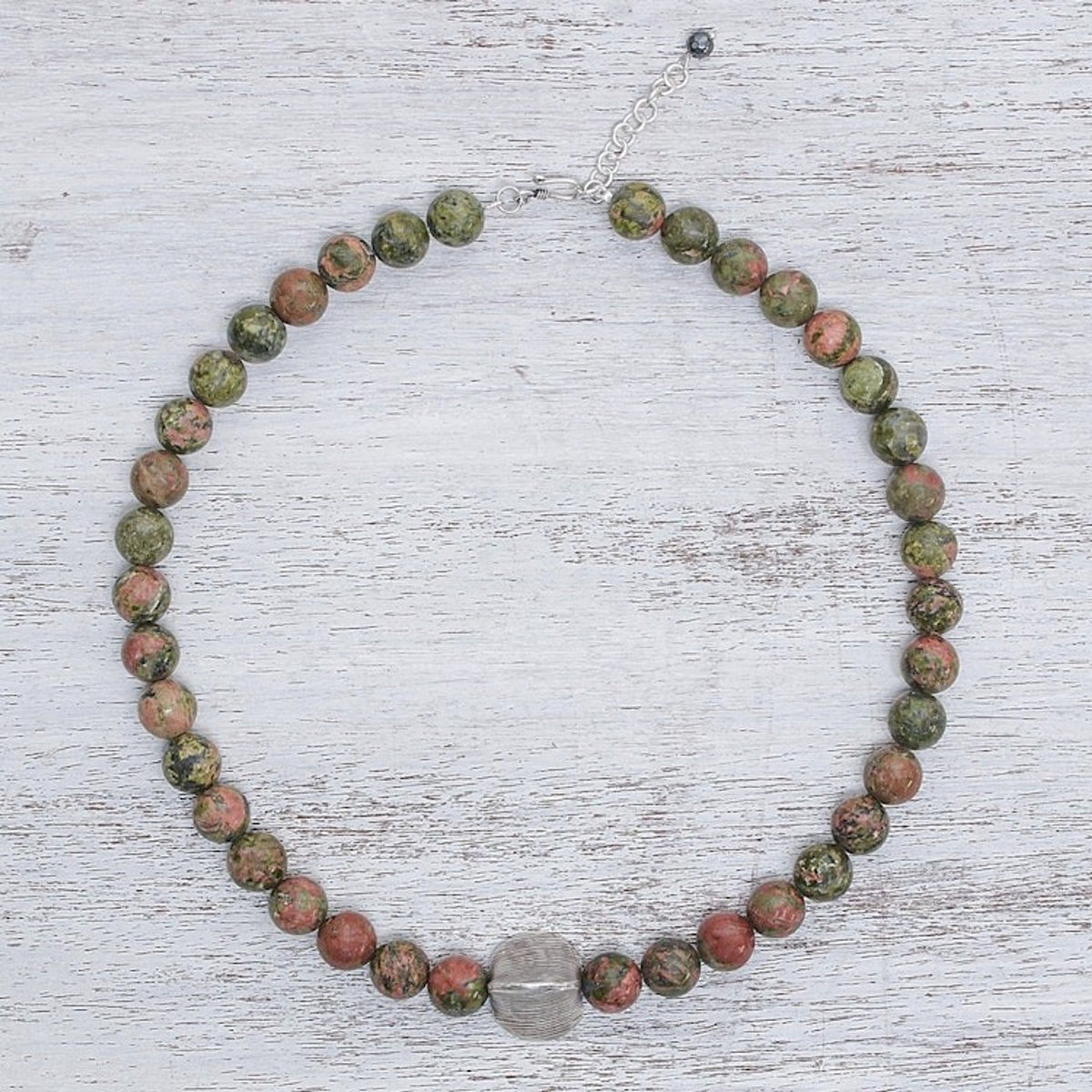 Unakite Beaded Pendant Necklace from Thailand 'Natural Mind'