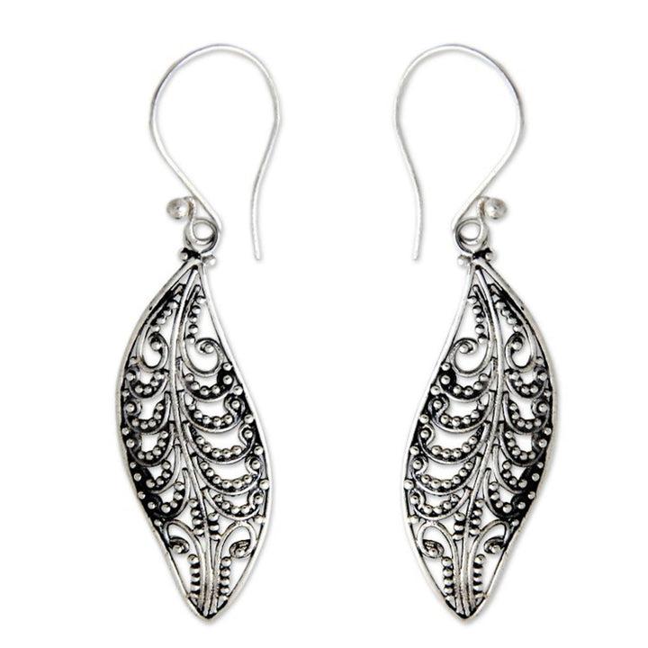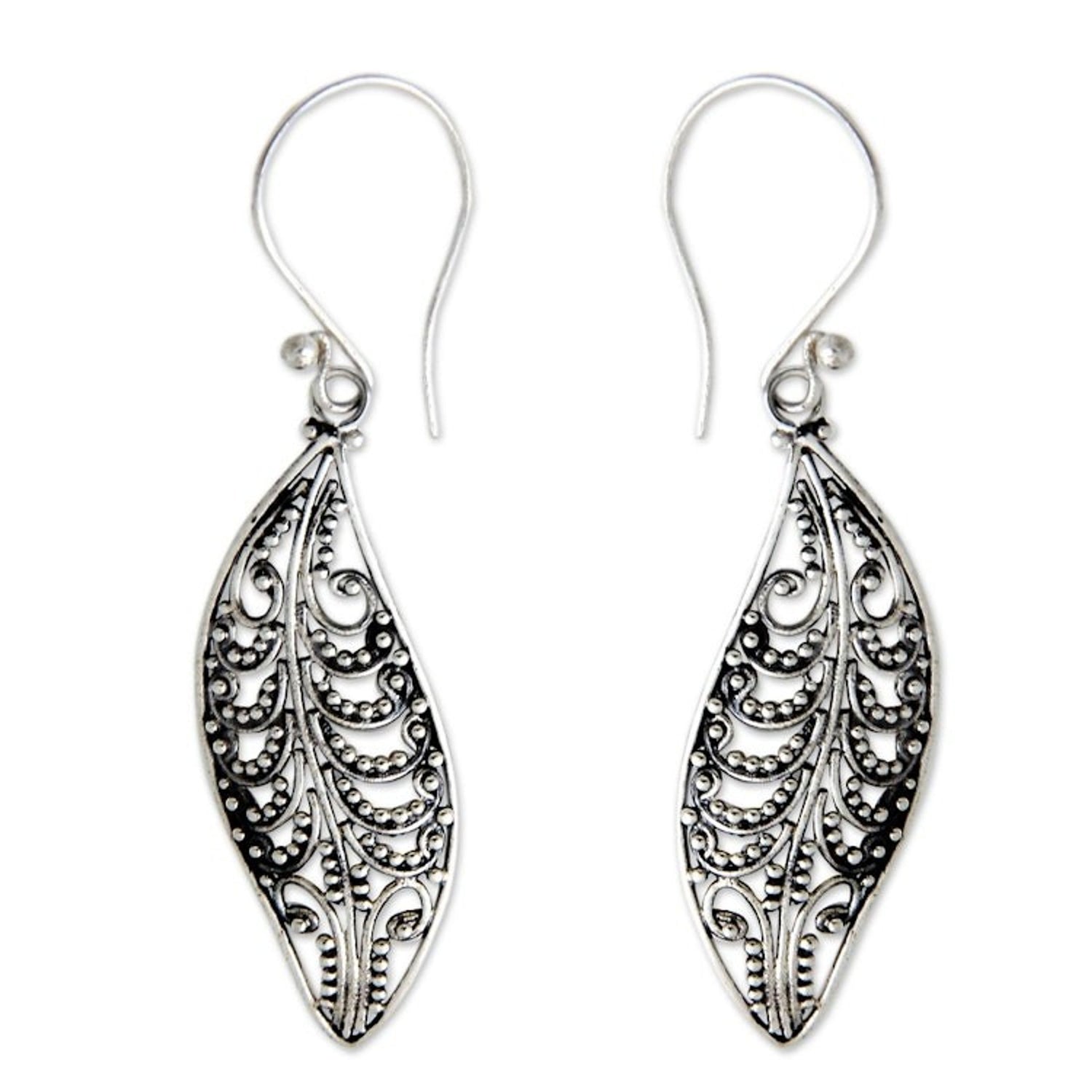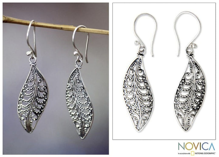 These Unique Sterling Silver Dangle Earrings 'Plumeria Leaf' by Independent Artisans capture the essence of lavish beauty and natural elegance. Artisan Kenari, who grew up in Bali's renowned village of gold and silversmiths, transforms delicate plumeria leaves into exquisite sterling silver creations. Each piece is entirely handcrafted by highly skilled Balinese artisans known as tukang, embodying Kenari's dedication and precision. The design balances her family’s artistic legacy with her personal vision, ensuring the tradition of Balinese silver continues to flourish.