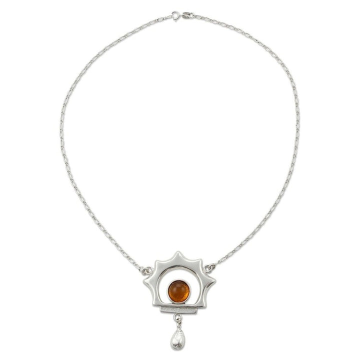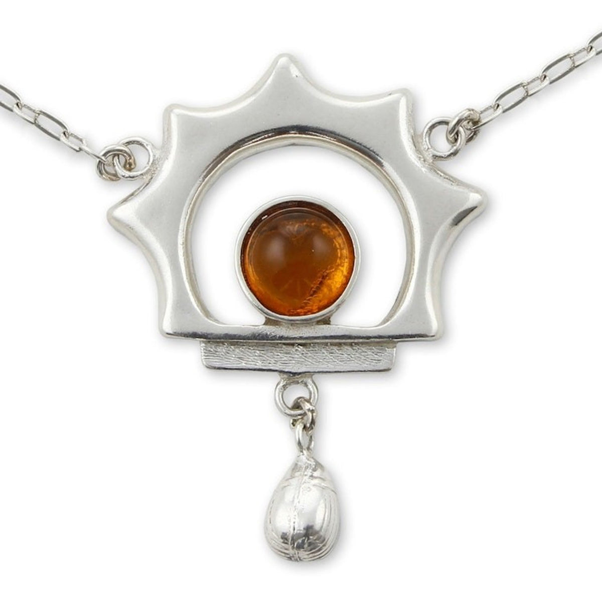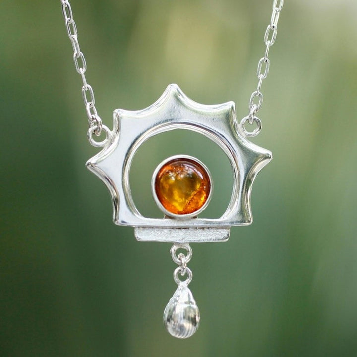Unique Sterling Silver Sunshine Necklace with Amber 'Leo Sun'