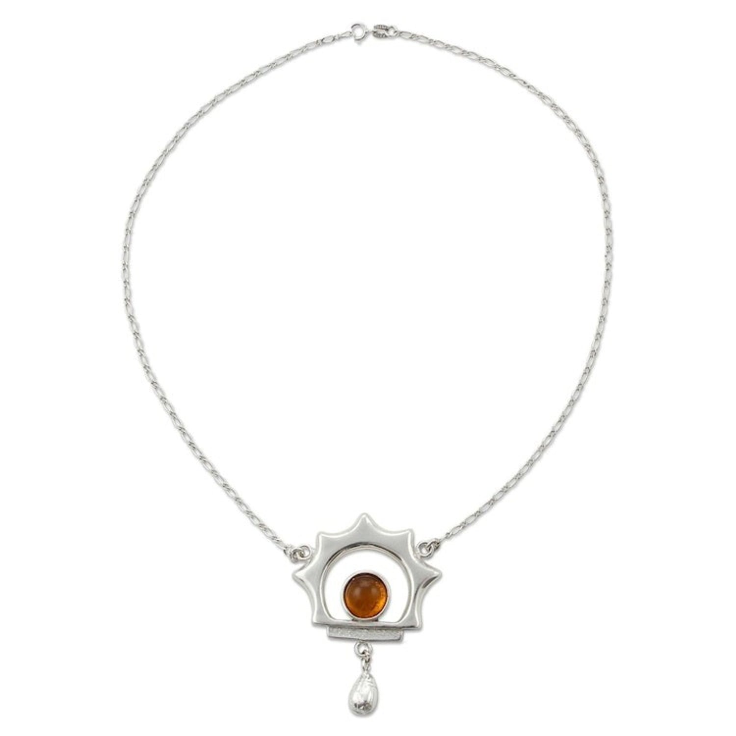 This Unique Sunshine Sterling Silver Necklace with Amber 'Leo Sun' by Independent Artisans is a radiant piece from the exclusive Zodiac Collection. Designed by Mariana Llanes, this necklace celebrates those born under the sun-ruled sign of Leo. A mighty mane of sterling silver surrounds a natural amber gemstone, which is believed to hold a loving heart within. This piece is a beautiful expression of both personality and cultural belief, inviting the wearer to surround themselves with the golden-hued beauty of their star sign.