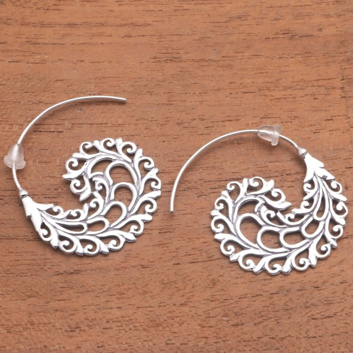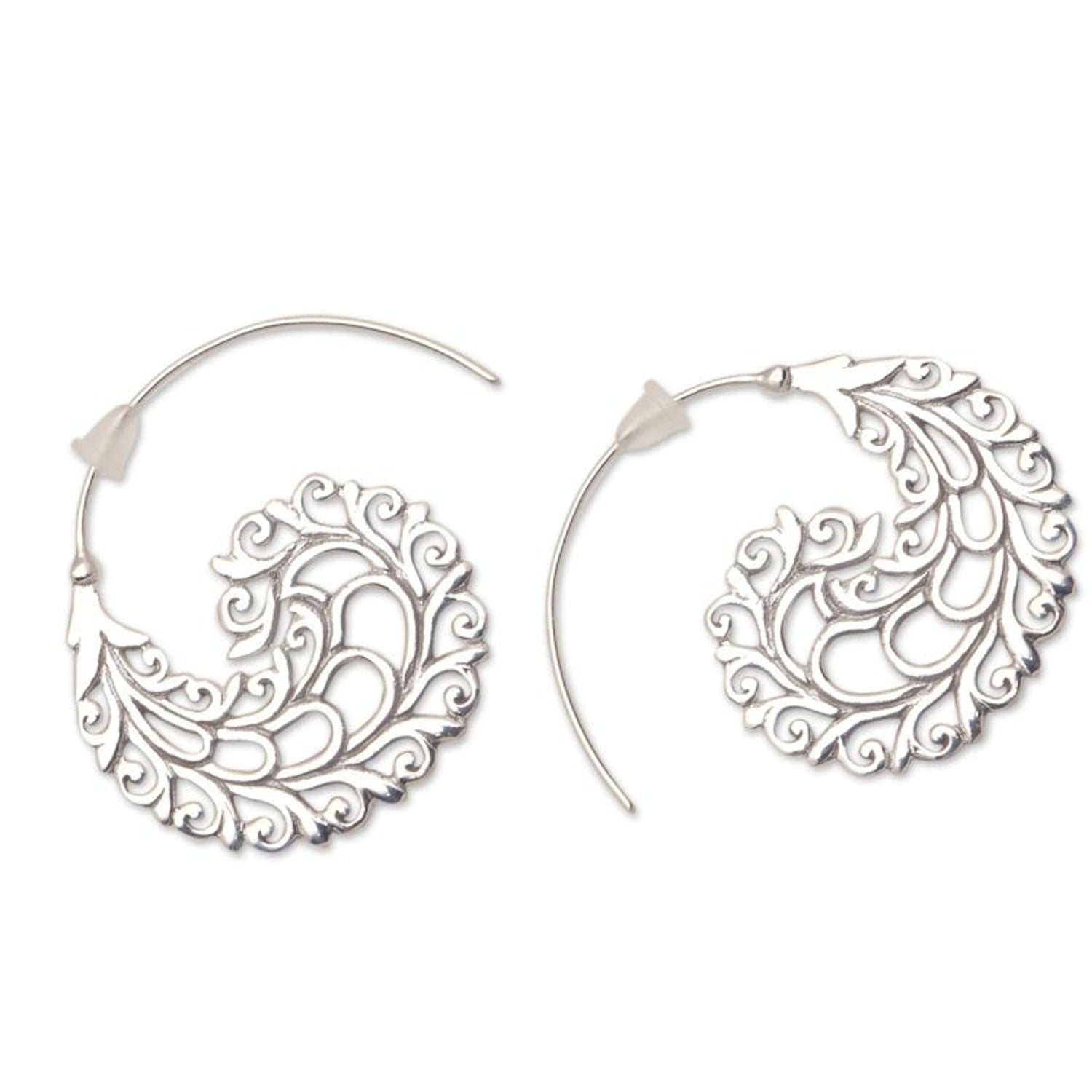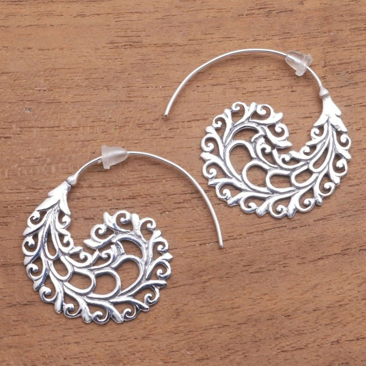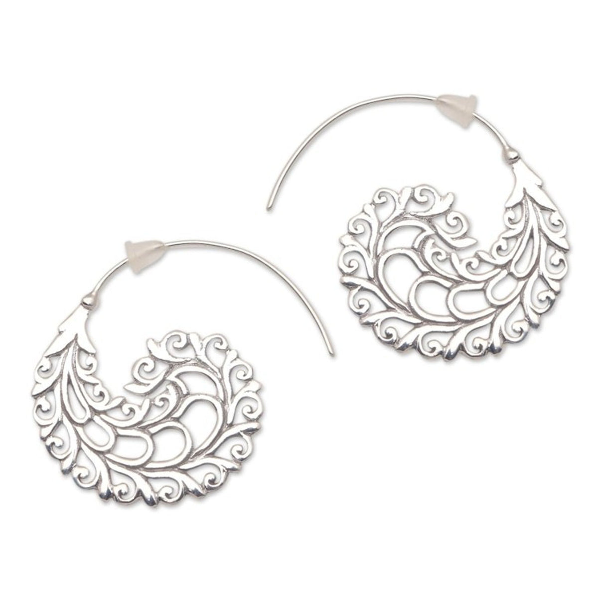 These Vine Pattern Sterling Silver Half-Hoop Earrings from Bali 'Romantic Vines' by Independent Artisans are a testament to the artistry of Balinese craftsmanship. Created by third-generation artisan Nyoman Rena, these half-hoop earrings feature romantic vine patterns in intricate openwork sterling silver that gleam beautifully in the light. This design perfectly captures both Balinese heritage and a contemporary, feminine charm, showcasing the artisan’s dedication to sharing Bali's artistry with the world.