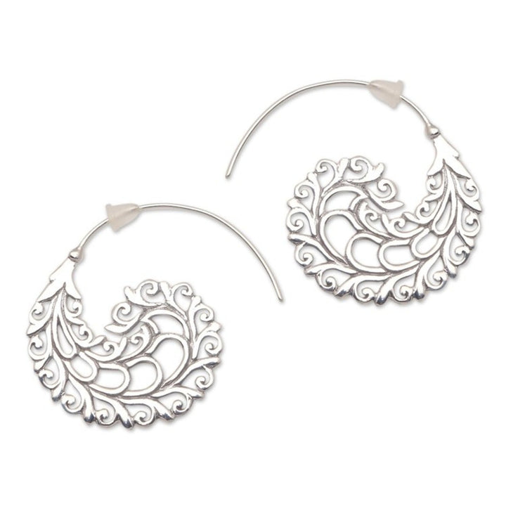 Vine Pattern Sterling Silver Half-Hoop Earrings from Bali 'Romantic Vines'