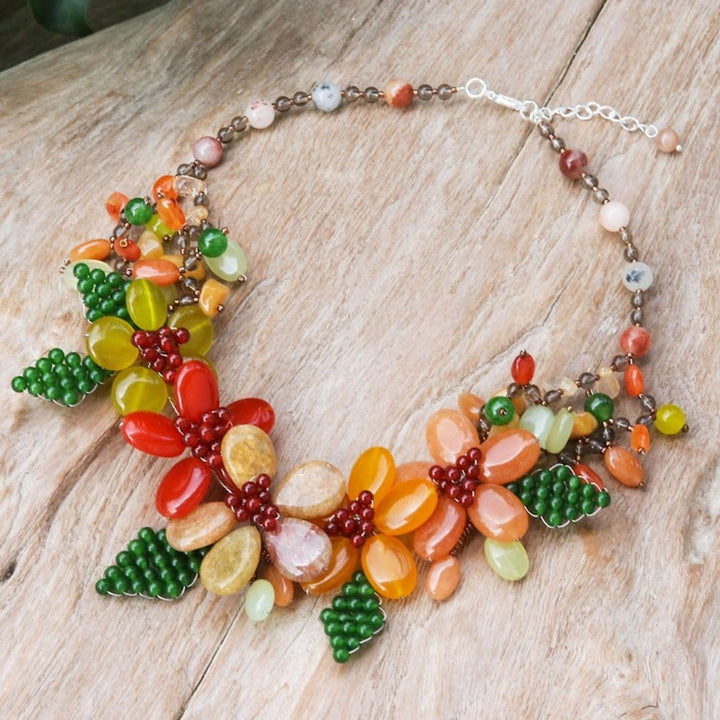 Warm and Green-Toned Floral Multi-Gemstone Beaded Necklace 'Summer Petals'